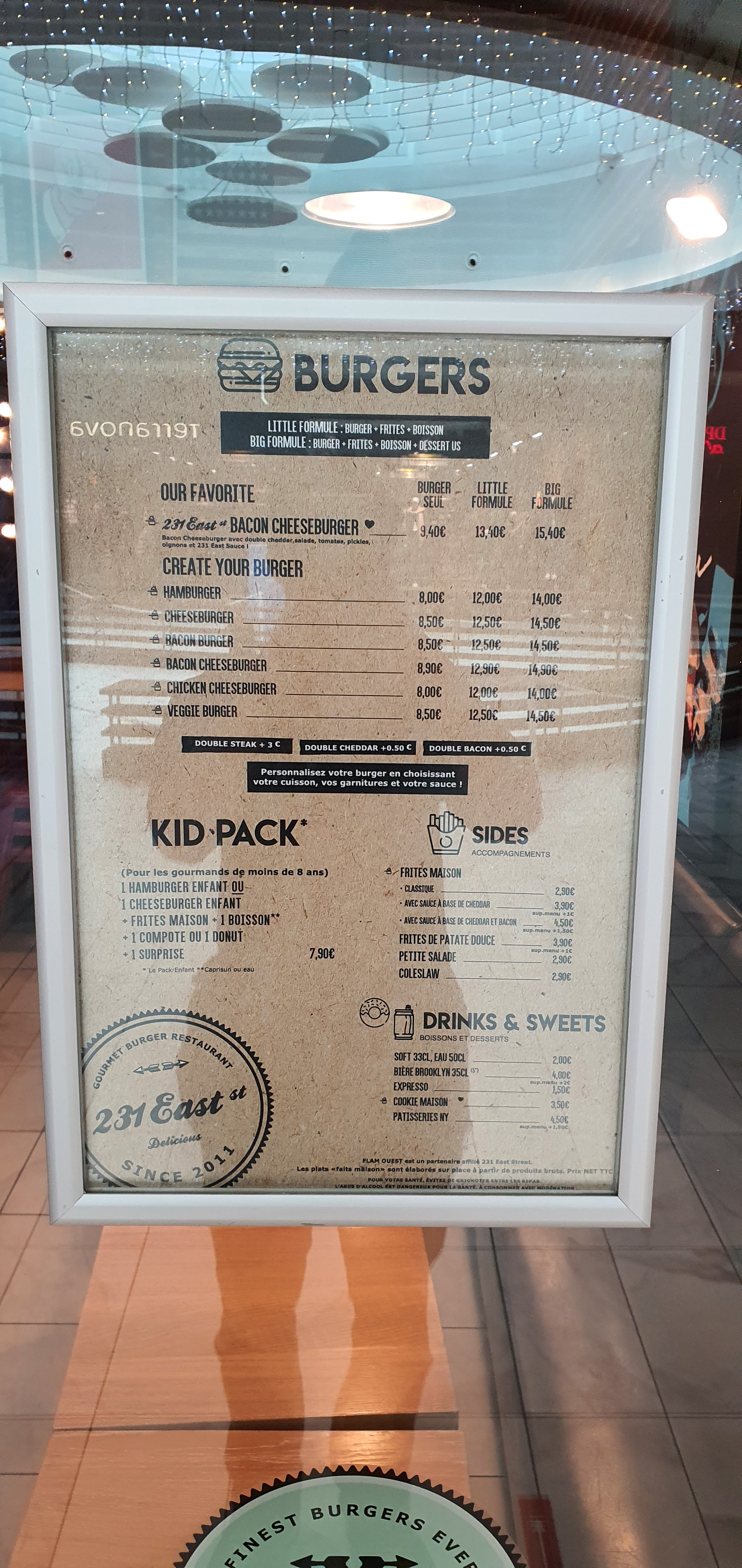 Vous voulez un bon et vrai Burger digne de ce nom, allez donc à 231 East Street!!! Le buns est bon, pour la viande qui est de très bonne qualité et d'une fraîcheur sans faille la cuisson est au choix, vous choisissez la garniture ainsi que la sauce. Les frites sont faites à partir de bonnes patates 🥔 qui sont cuites dans la graisse de bœuf 🐂. Vaste choix de desserts, les cookies 🍪 caramel beurre salé sont à tomber par terre, excellent!!! Arrêter les fast food tels Macdonald, Burger King, Quick et autres KFC, une fois que vous aurez goûté un burger de 231 East Street, vous n'irez nulle part d'autre 🙂