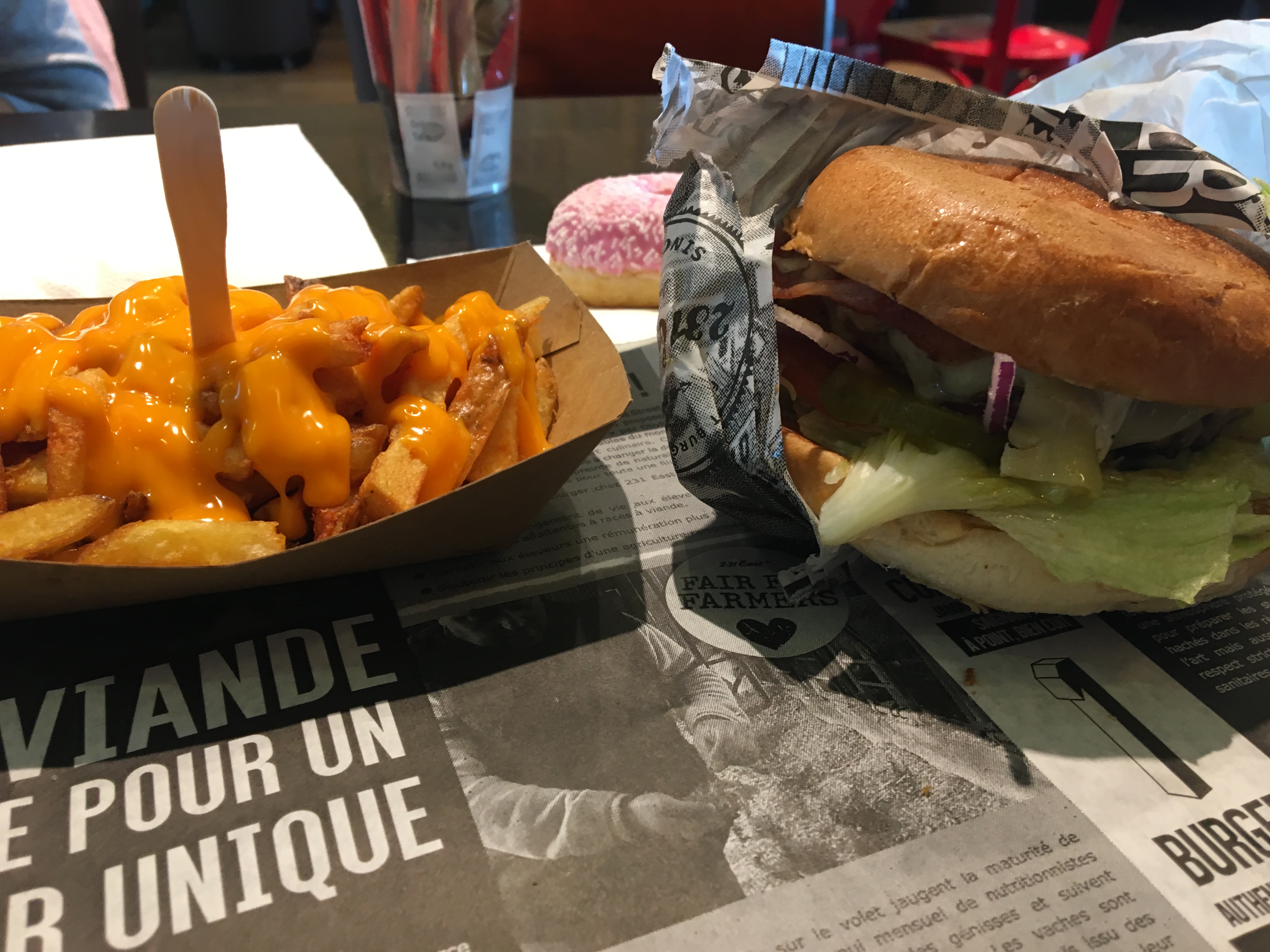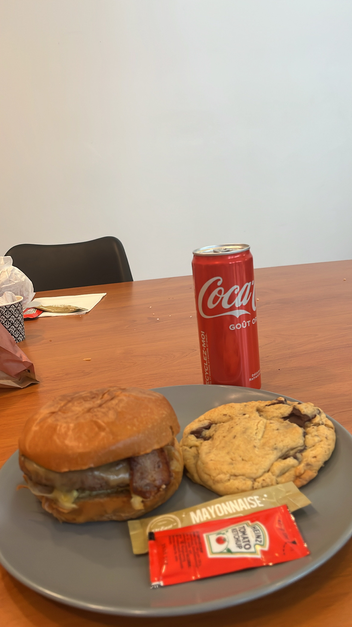 Un bon burger, de très bonnes frites cheddar bacon, le cookie n'est pas fou. C'est globalement un bon fast food !