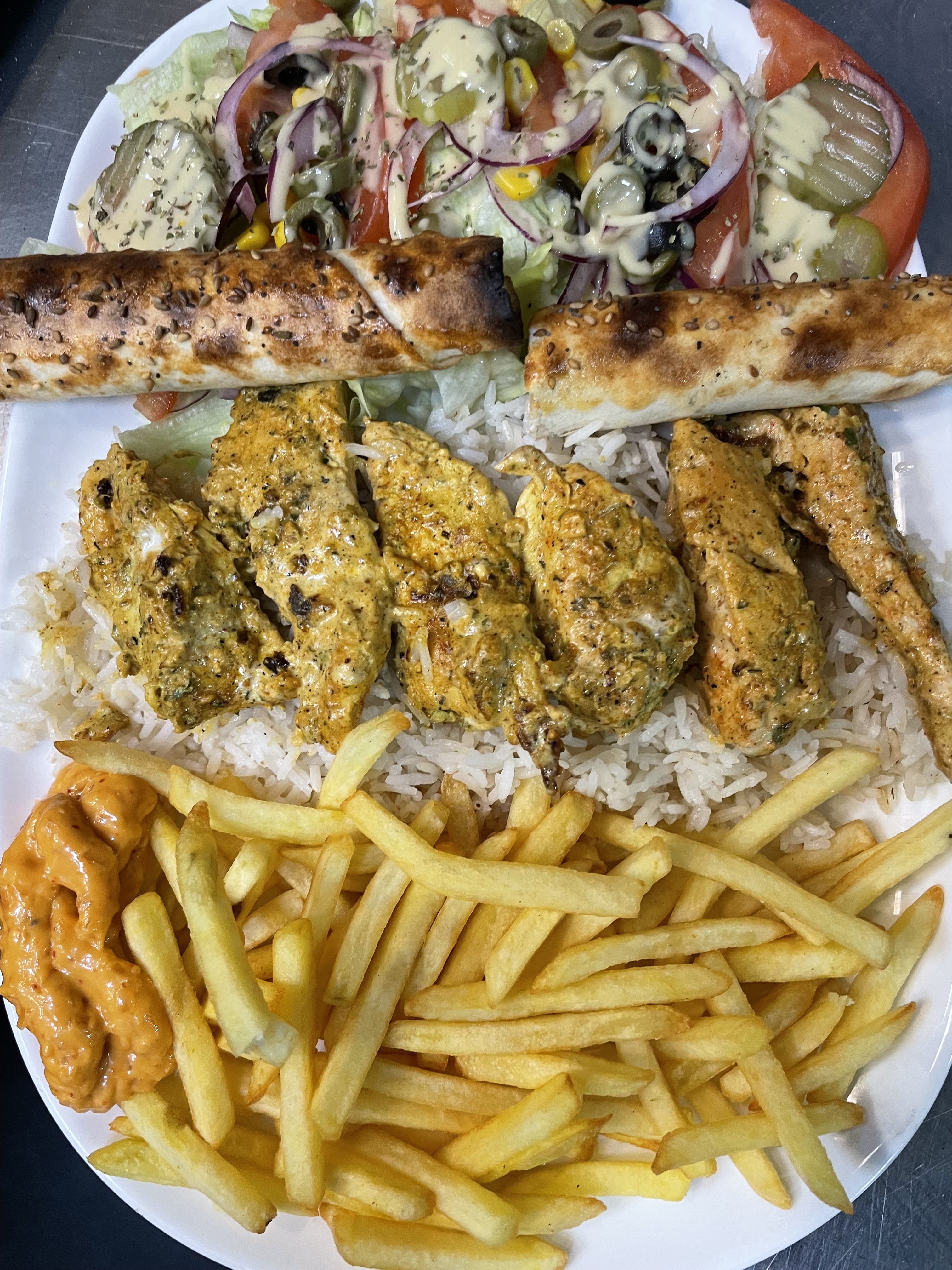 Accueil sympathique et très peu d’attente après la commande. Viande fraîches et savoureuses très juteuse pour avoir testé toute les viandes elle sont formidables. A noter qu’il y’a des sauces faites maison et un large choix de marinades pour les viandes je vous recommande la sauce à l’ail qui est magnifique Prix raisonnable pour une qualité assuré Super bon snack à Villeurbanne