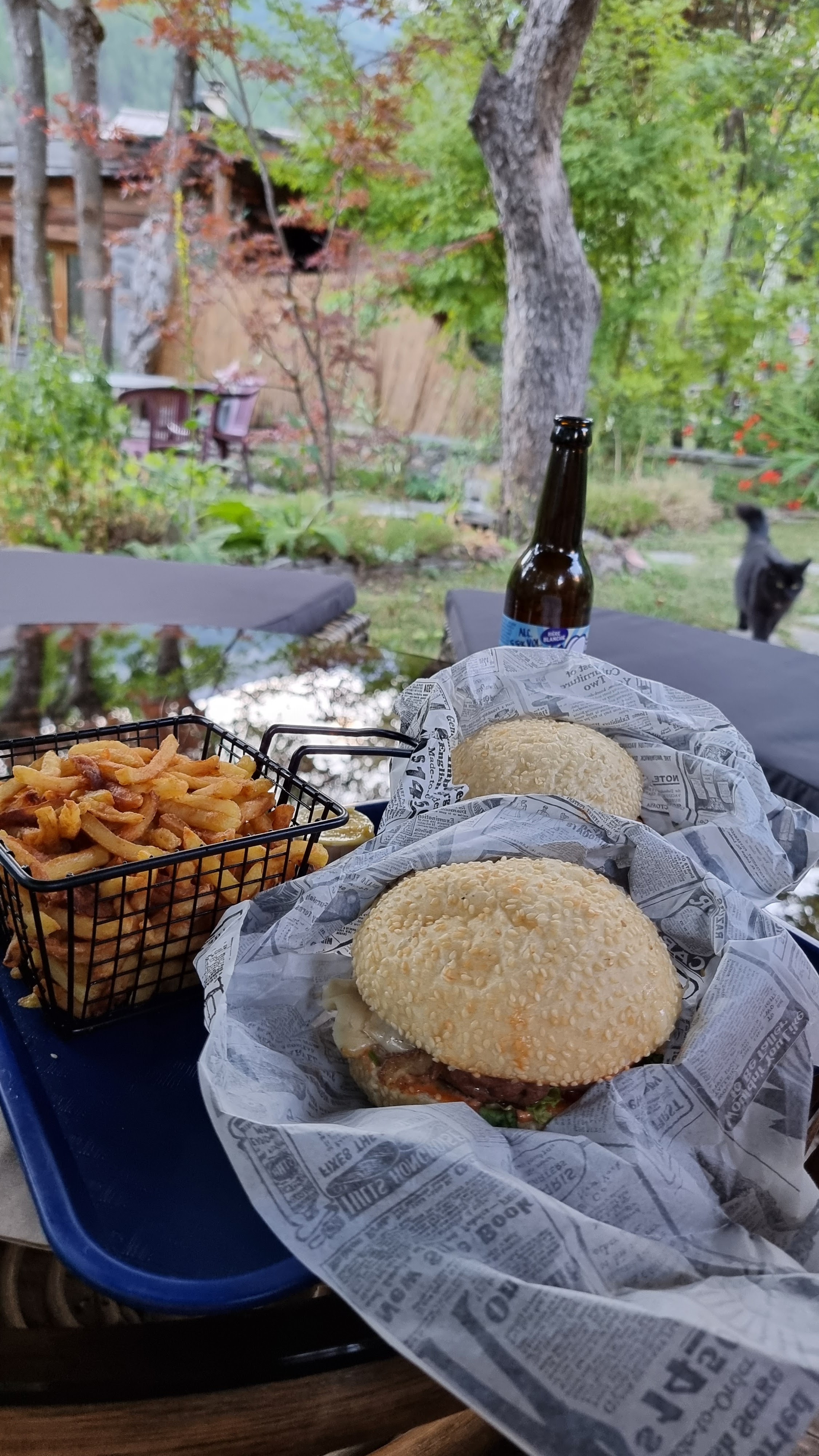 Des hamburgers et des frites super savoureux ! Les propriétaires sont très sympathiques et la nourriture était prête rapidement. Beau jardin conçu avec beaucoup d'amour pour y manger.