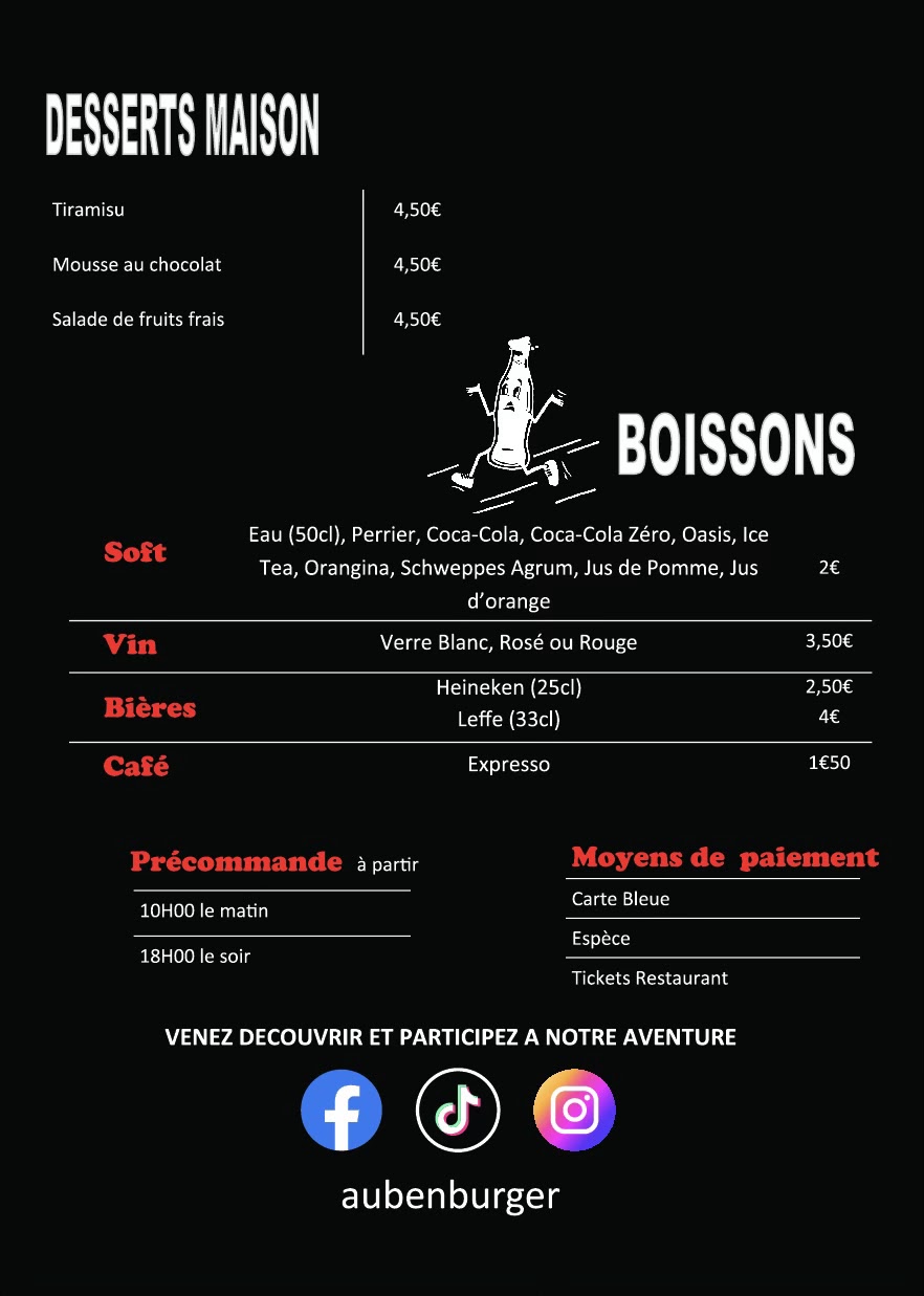 les burger sont vraiment bons avec des recettes variées pour pinailler si je n'avais qu'une seule chose à dire. ce serait de publier sur google vos burger du moment car je ne commande que par téléphone du coup je ne le prend jamais bonne continuation