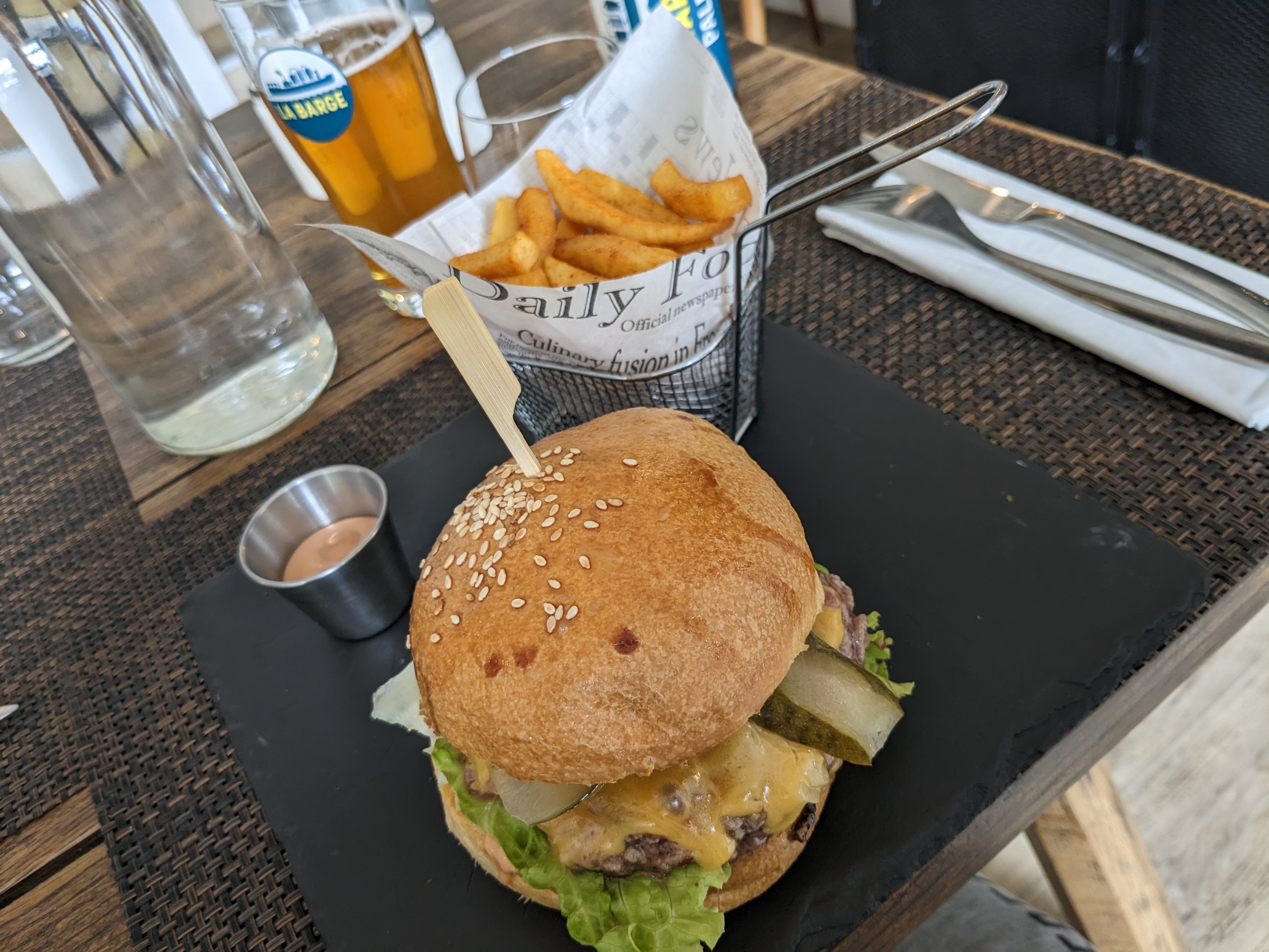 Un bon burger comme on les aime, savoureux et bien préparé accompagné de frites délicieuses ! En plus, l'accueil y est fort agréable. J'ai mangé en intérieur, j'avoue que la vue qui donne sur l'extérieur donne envie de découvrir s'il y a une terrasse.