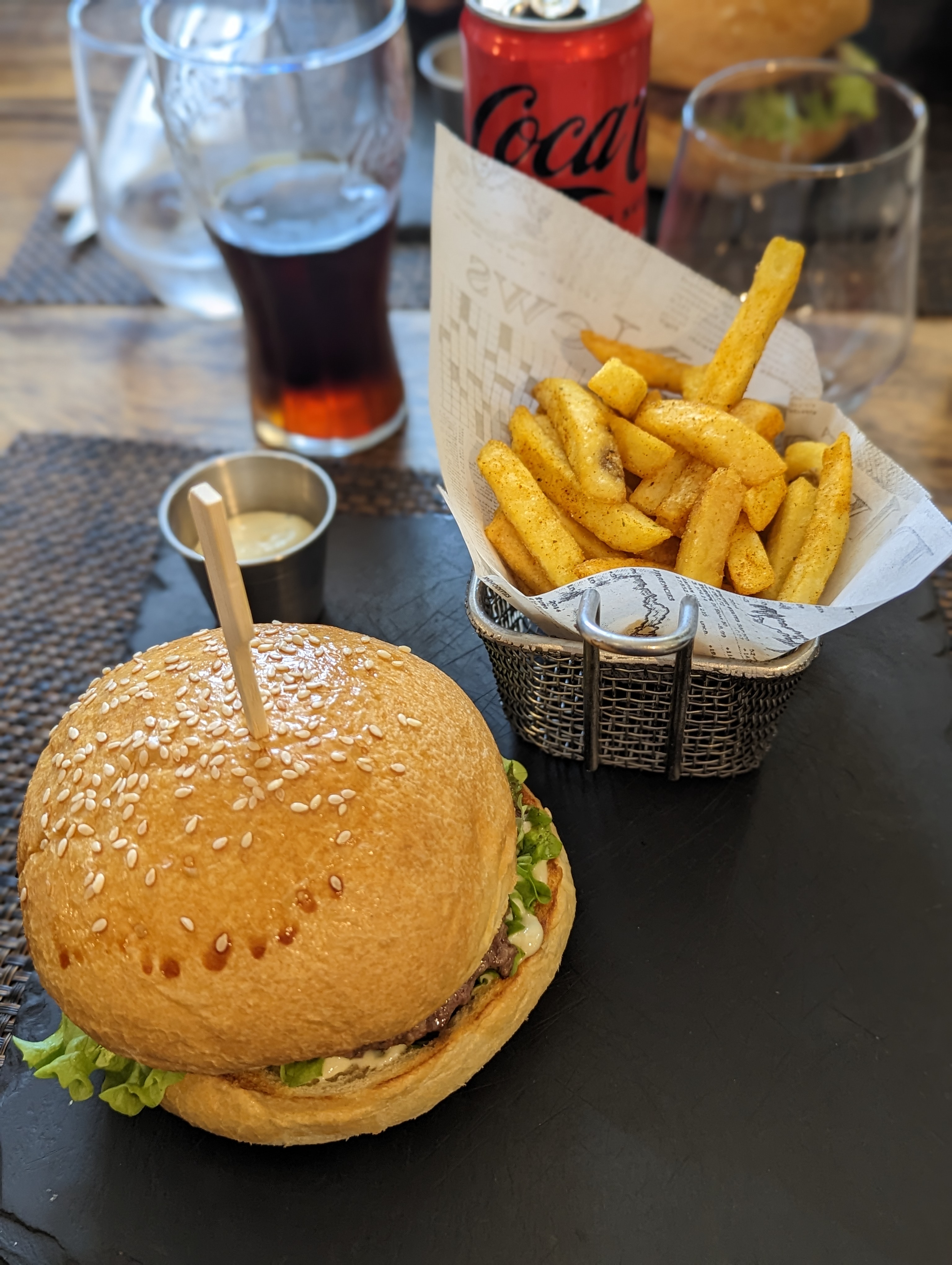 Excellent restaurant, de la planche apéro au dessert (pâtisseries maison) en passant par les salades, viandes, et surtout les incontournables hamburgers ! Nous y allons très régulièrement. L’été nous pouvons manger dans le jardin, une petite bulle de paradis. Je recommande.