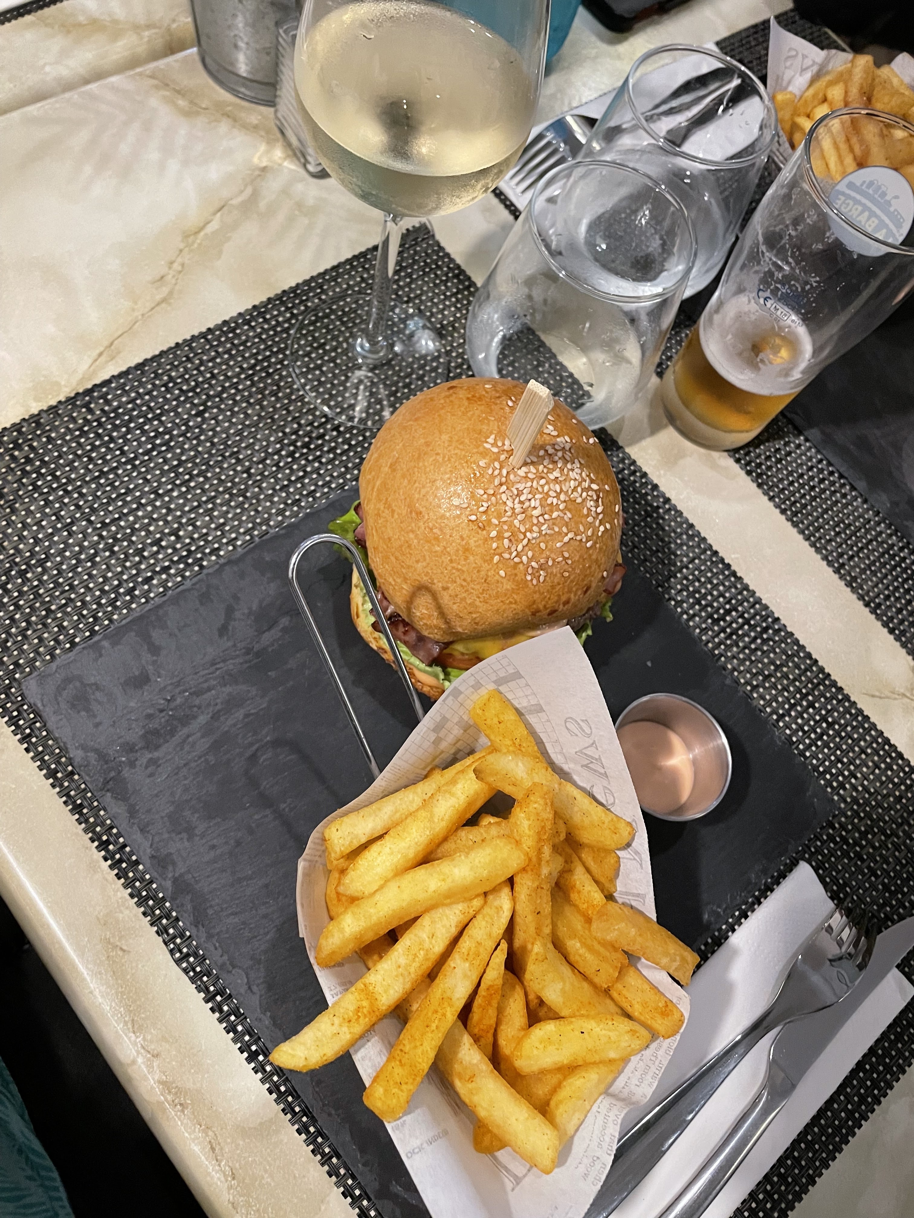 Un endroit charmant avec une ambiance chaleureuse et familiale. Les burgers y sont succulents avec un pain parfait et des frites délicieuses. Le jardin semble idéal pour l’été Les employés sont souriant et très agréables. Je recommande vivement ce petit saint tropez.