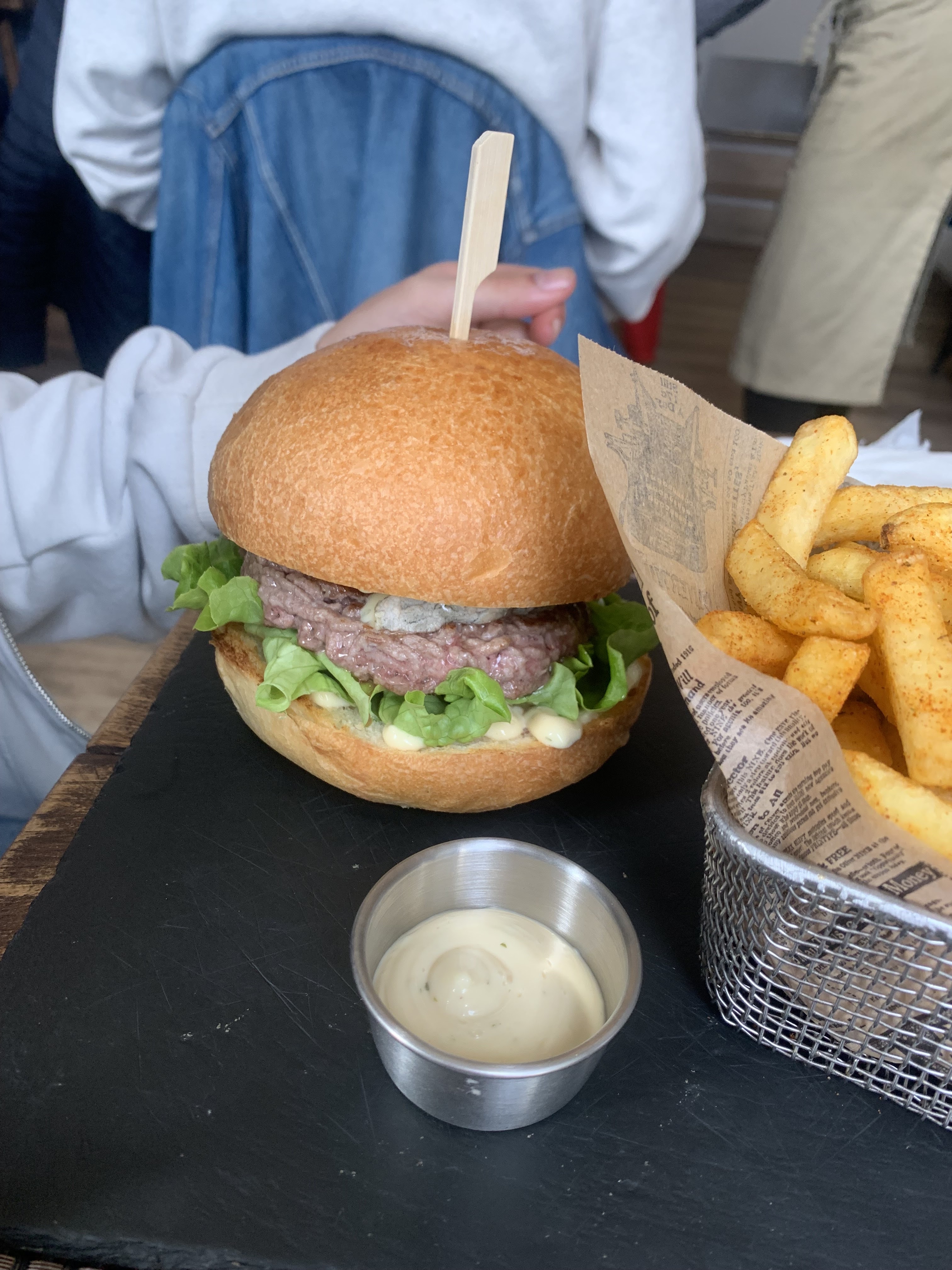 Super restaurant !! Ça fait deux fois que nous y allons, et c’est vraiment très bon ! Burger et frites sont vraiment excellent, les desserts sont très bon aussi surtout « le tiramisu granola et nutella » un très bon accueil , très convivial. Petit à l’intérieur mais vraiment sympa pour un repas avec sa famille et ses amis. Les sauces sont assorties aux burgers . Délicieux. Je recommande ce restaurant.