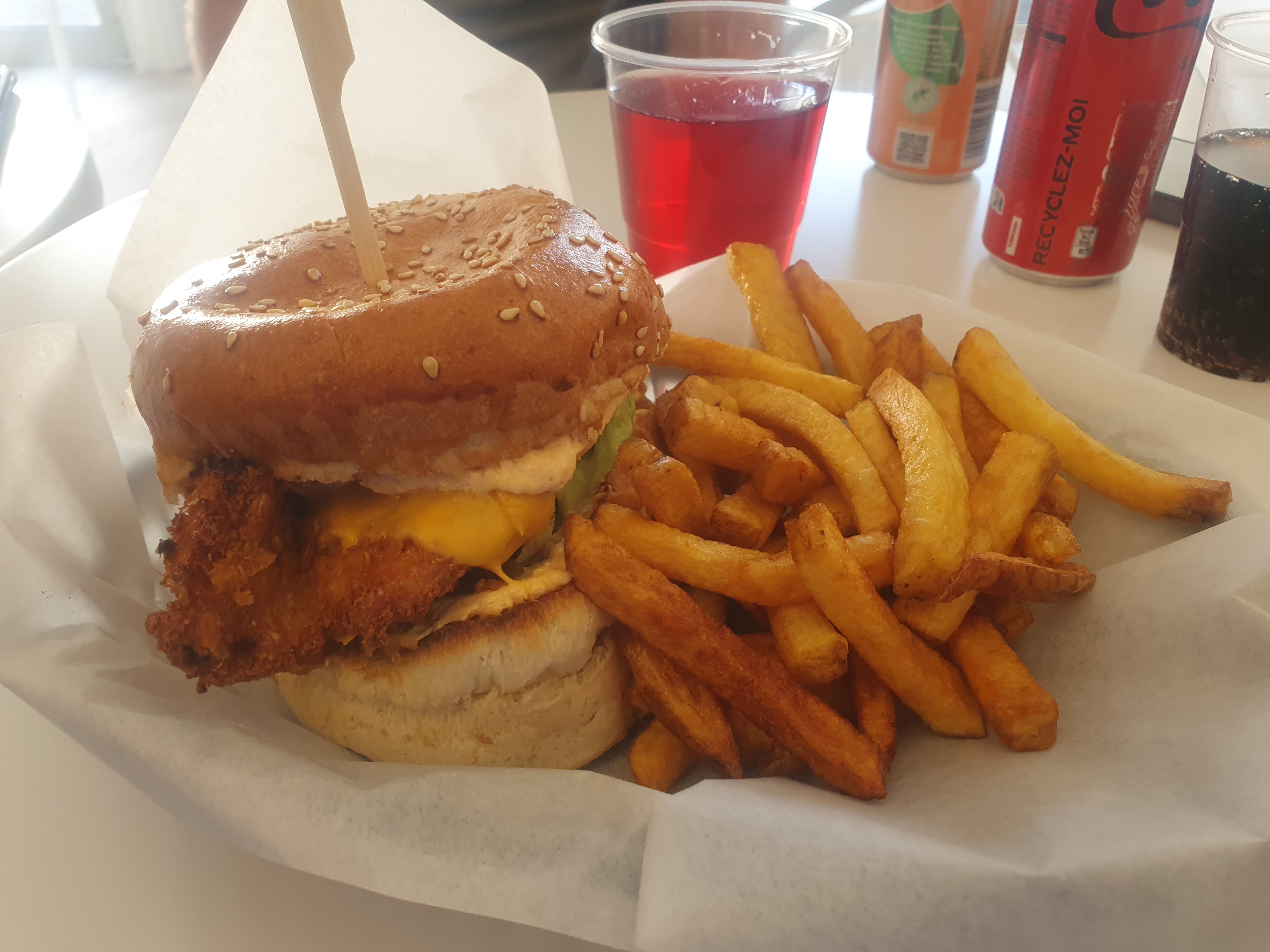 On avait entendu parler de ce nouveau petit resto, donc on est venus tester. Le personnel est vraiment très sympathique, souriant, rien a dire ! Les burgers étaient très bons, les frites cependant pas terribles, manquaient de cuisson, sans vraiment de goût. Les nuggets (menu enfant) étaient bons aussi. Bémol, pas de chaise haute cependant, pas évident quand on veut manger tranquillement mais qu'on a des enfants en bas âge. La vaisselle jetable ne nous a pas dérangés. Le prix des burgers et salades ne nous a pas parus excessifs compte tenu de l'emplacement du restaurant, par contre le prix des crêpes est indécent a nos yeux. 4€ pour une pauvre petite crêpe au Nutella, vraiment on s'est sentis un peu volés sur ça, même pas un peu de chantilly ou une boule de glace, pour le prix ça aurait été au moins le minimum. C'est un petit restaurant sympathique, bien placé car pas trop de passage et en même temps proche de la mer, mais qui aspire à s'améliorer encore sur certains points. Bonne continuation à vous, vous êtes sur la bonne voie ! Et gardez votre bonne humeur, c'est tellement appréciable !