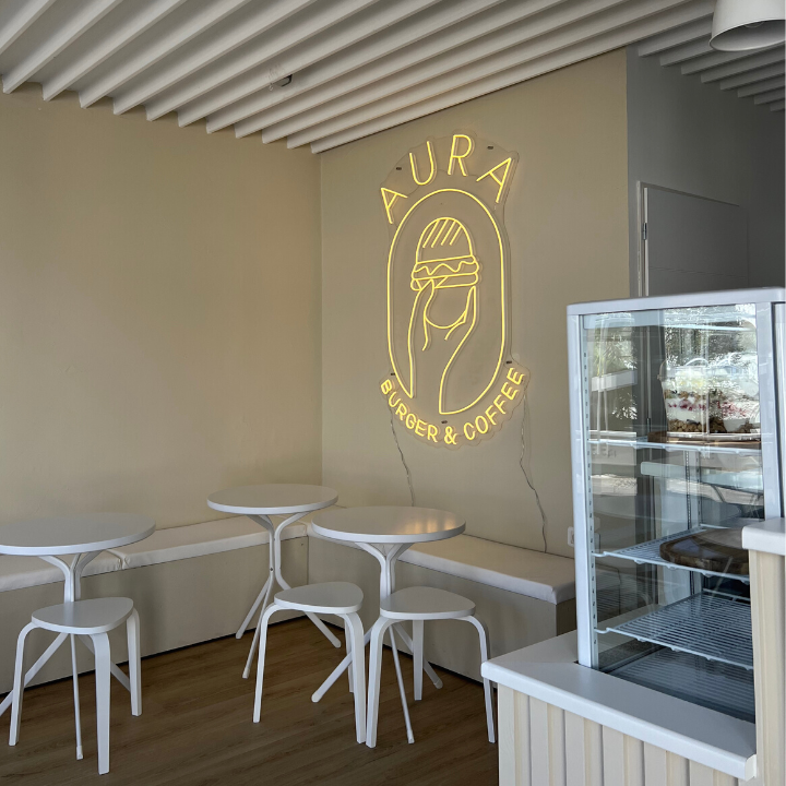Je suis navrée de laisser un avis aussi négatif mais je n’ai apprécié le moment que j’ai passé à Aura Burger… Le personnel est sympathique, certes. Mais la cuisine n’est pas bonne. Ça semble désorganisé et il y a un manque de professionnalisme… Les frites sont surgelées et pâles, pas bonnes. Le Burger est sec et sans plus, noyé sous une crème de fromage sans goût. Le café latte « glacé » est servi tiède, et vous pouvez avoir des emballages de glaçons bleu en plastique laissé dans le verre par mégarde… Honnêtement, au vu des photos et de la communication sur Instagram, je m’attendais à mille fois mieux ! Un peu déçue… De plus, il me semblait que les frites étaient faites maison avant. Il semblerait que ça perde en qualité. Attention à cela.