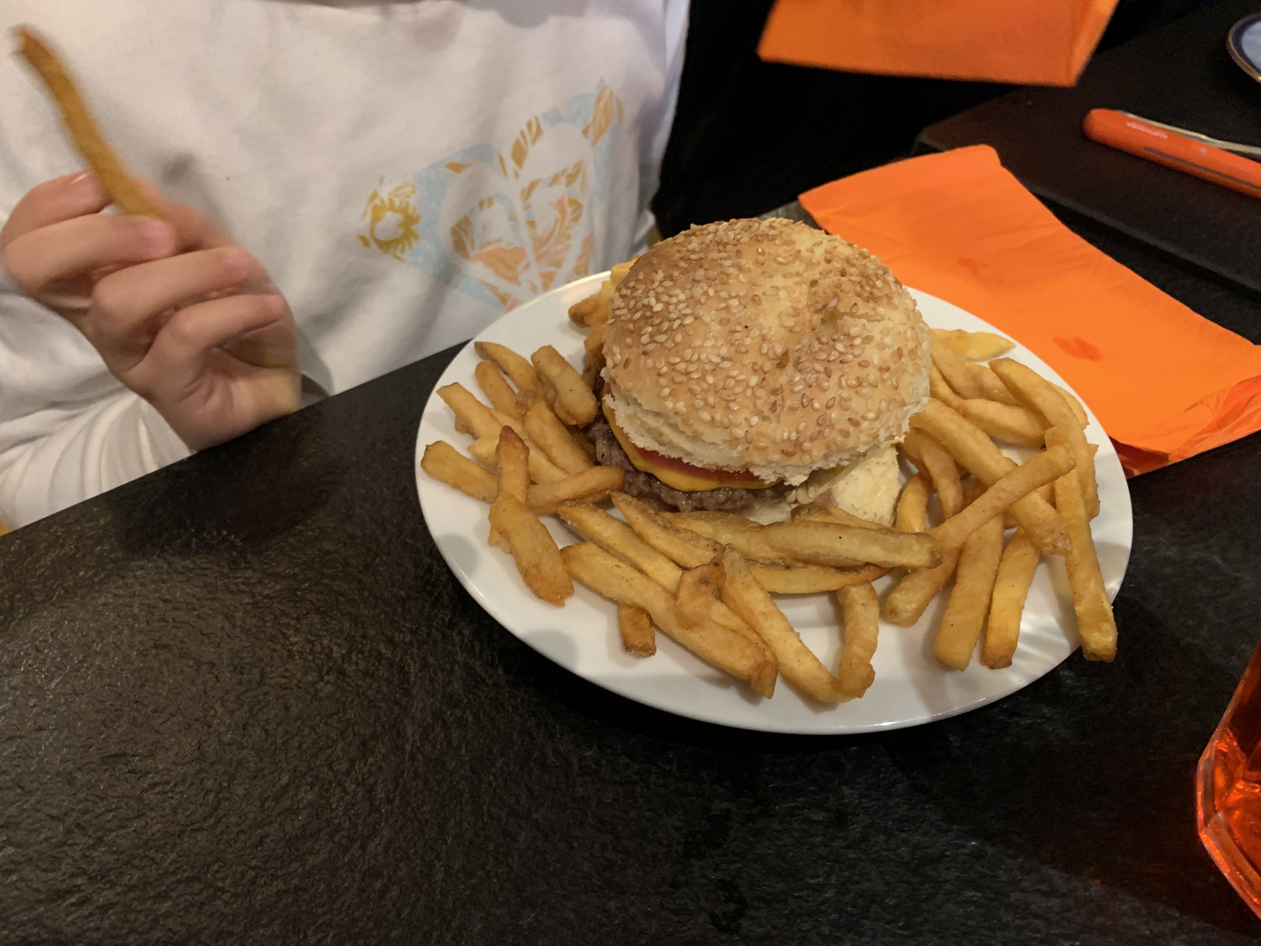Accueil sympathique et chaleureux. Des dessins et des feutres proposés pour les enfants. Burger originaux et délicieux. Idem pour le milkshake. Une bonne adresse à recommander.