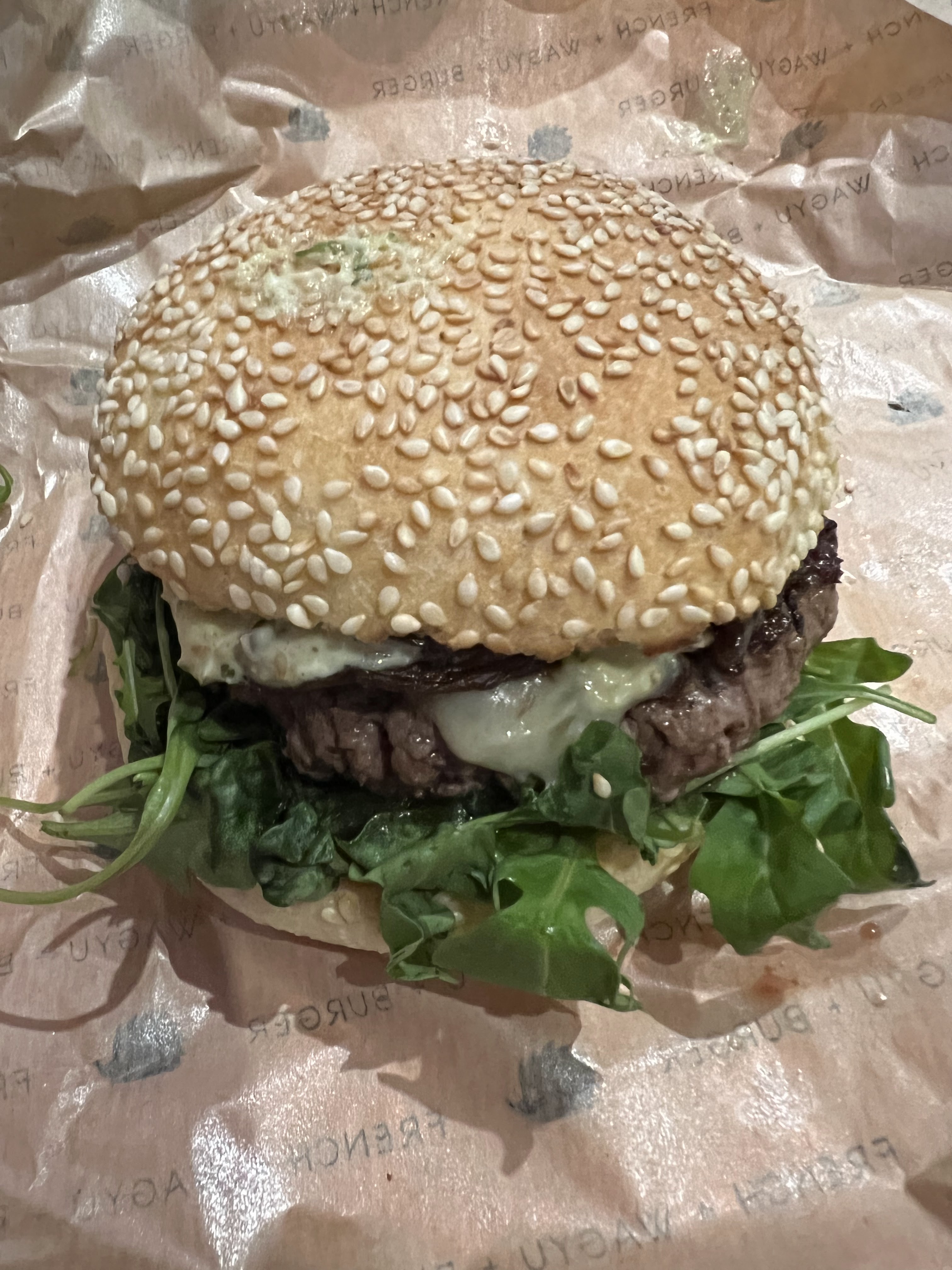 Il y avait un charmant burger wagu et un verre de vin. Burger était charmant, fraîchement préparé. Service amical avec le serveur expliquant tout en anglais. Je recommande vraiment