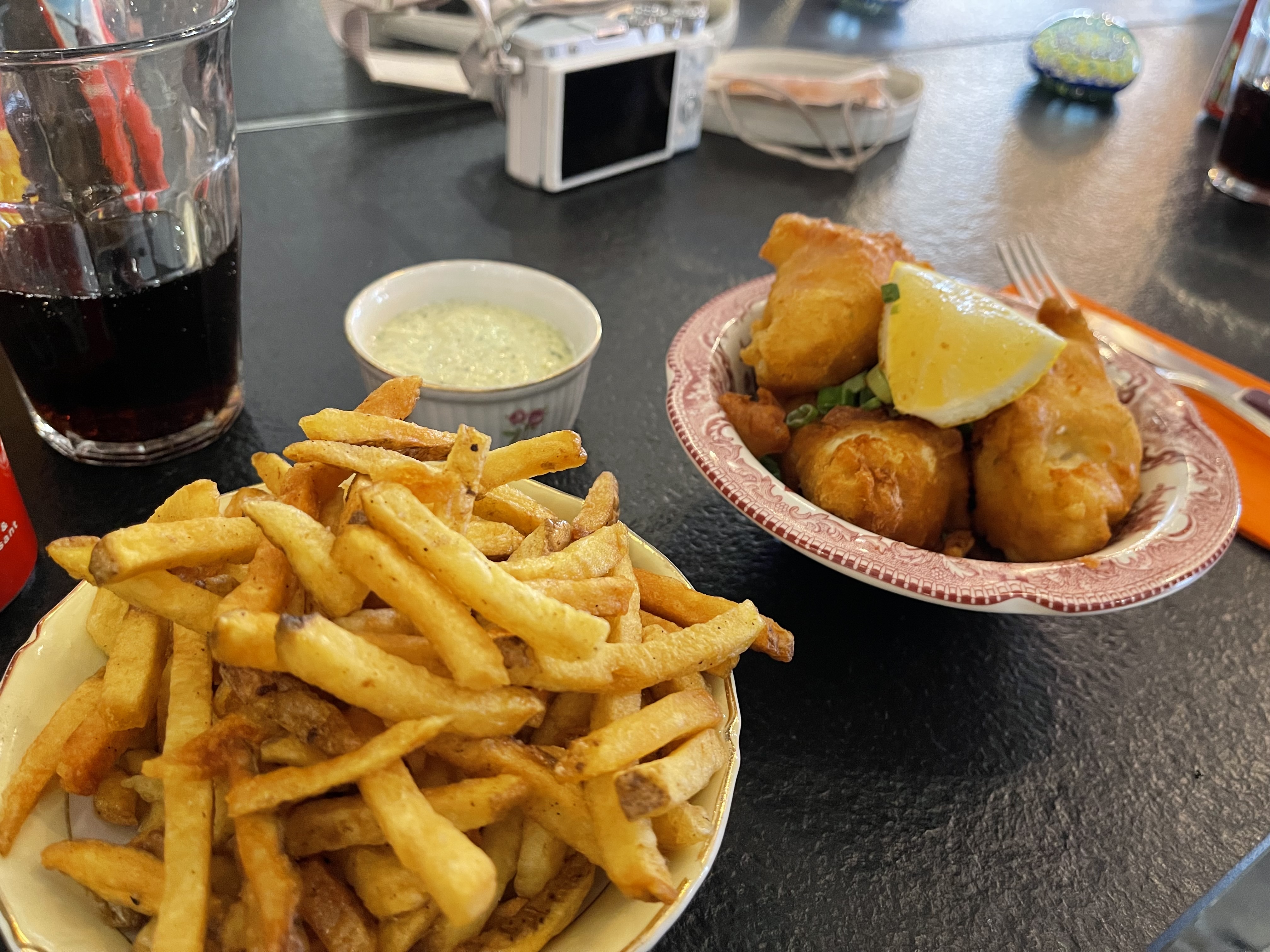 Équipe très cool. Une dame s'est occupée de nous, elle parle anglais. Des hamburgers et du fish and chips, voilà ce qu’ils servent. J'y retournerai.