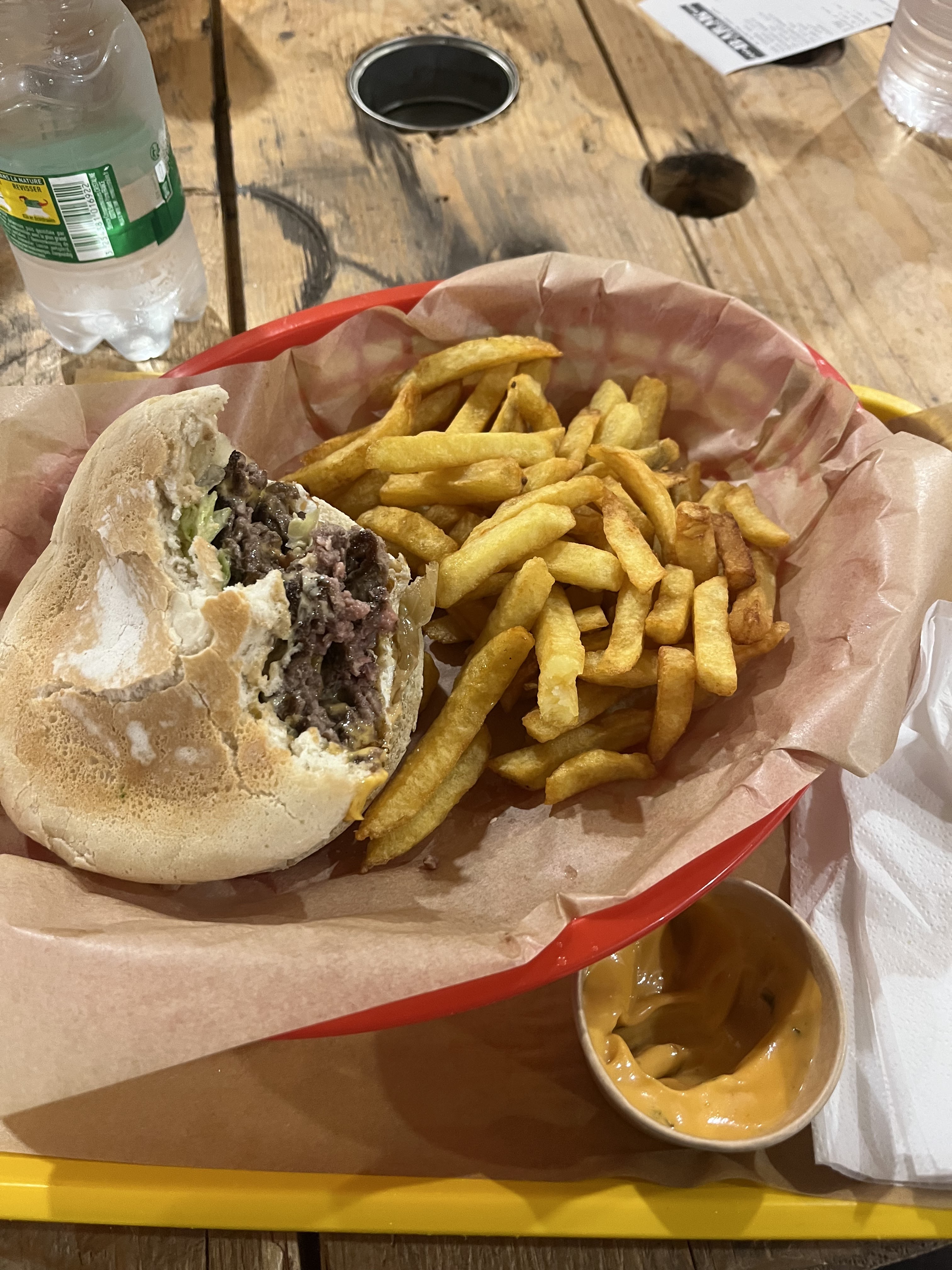 Je me suis régalée. Super burger avec une quantité de bonnes frites suffisante! Un bon accueil dans une déco qui m a fait voyager le temps du repas dans une véritable baraque à frites belge! Je recommande.Allez-y les yeux fermés !