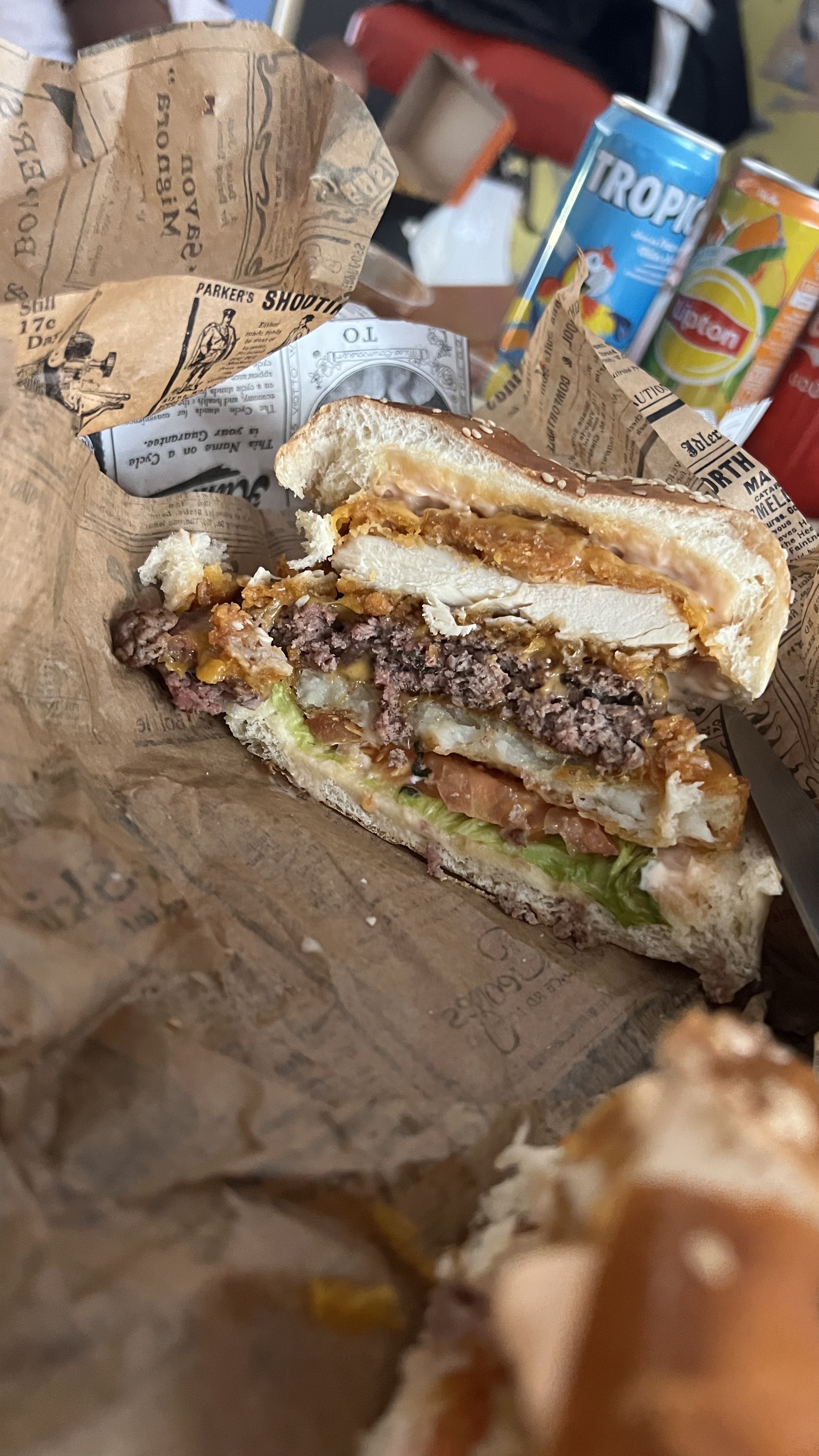 Dans l’ensemble c’était pas mauvais mais rien d’exceptionnel Les steak ne sont pas assaisonnés ni poivre ni sel ce qui rend le burger insipide Le poulet est très bon en revanche