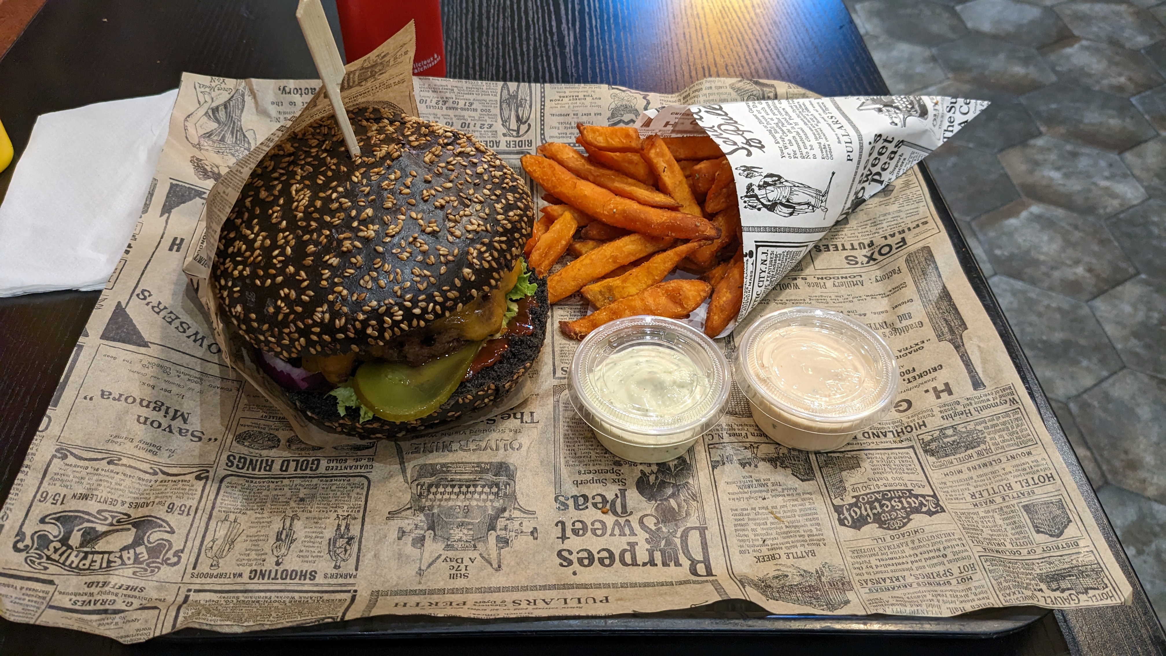Dès burger qui sont bon pas trop cher et le restaurant est ouvert jusque tard ! Il y a même une option végétarienne et des sauces faites maison 🤤