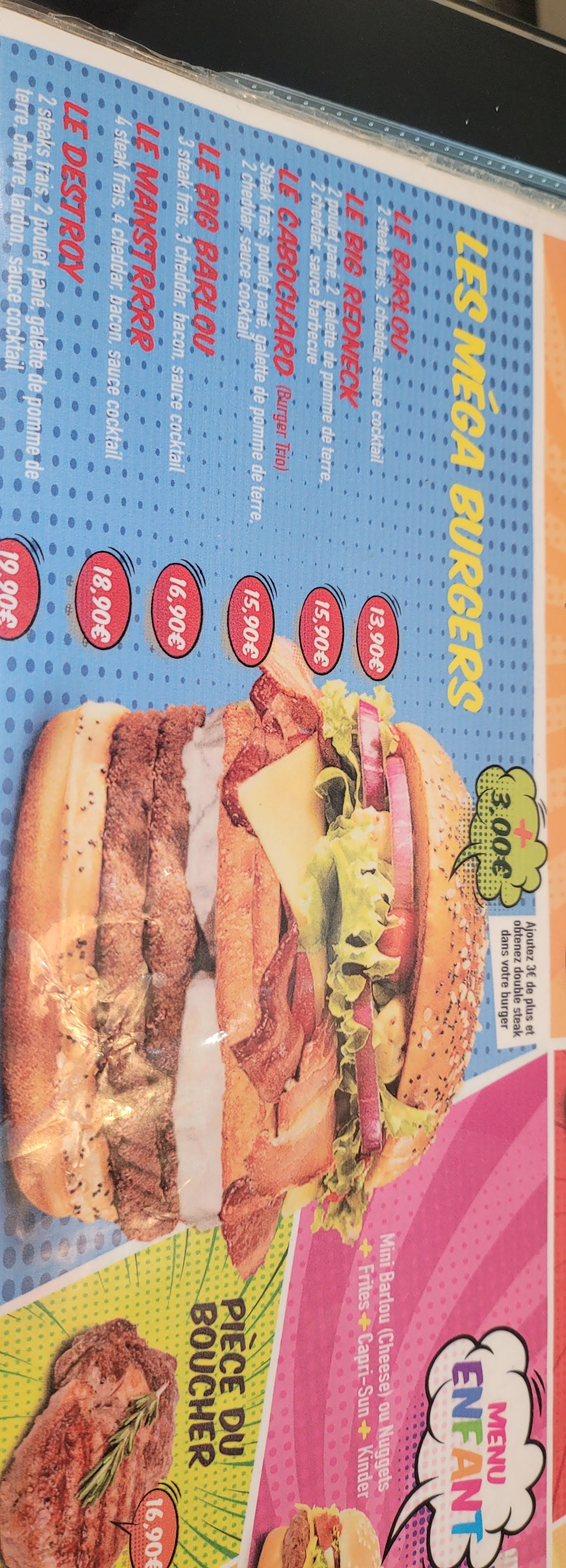 Cassage de ventre assuré, 20sur 10 . Accueil, service sans oublier la fraîcheur et le goût Nous reviendrons pour tester les autres burger. Bravo l'équipe Barlou.