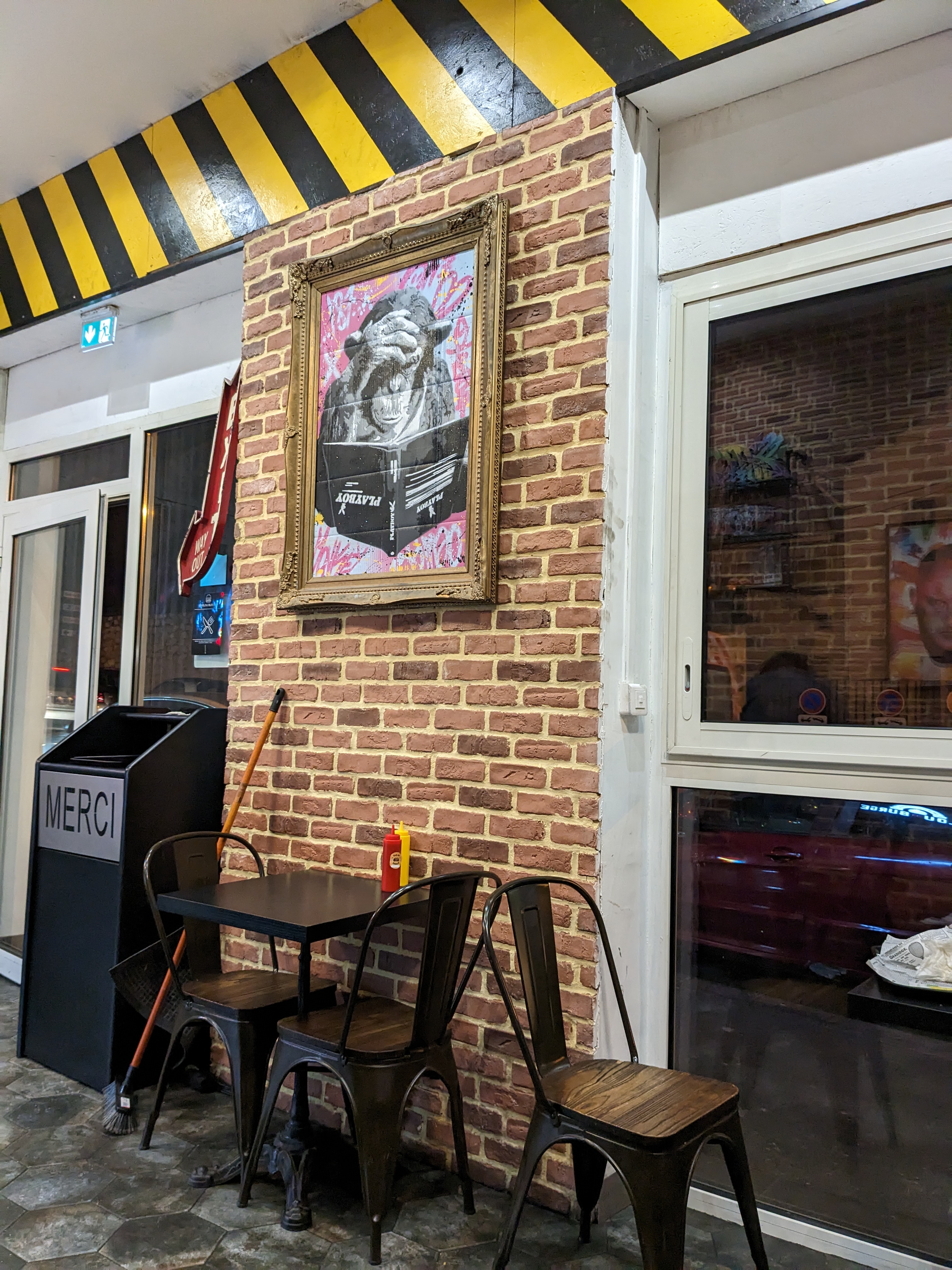 On peux toujours faire mieux mais pour le coup les 5 stars sont pas volées. D'exterieur cela reste sans pub outrancière et autres signalétique excessive on pourrais presque passer devant sans le voir. Une toute petite salle et terrasse. Un accueil avec le sourire, un large choix, des pains de boulangerie, des frites maison avec sauce cheddar au top en fait une adresse à connaitre. Attention à l'assaisonnement de la viande cela manque un peu de sel.
