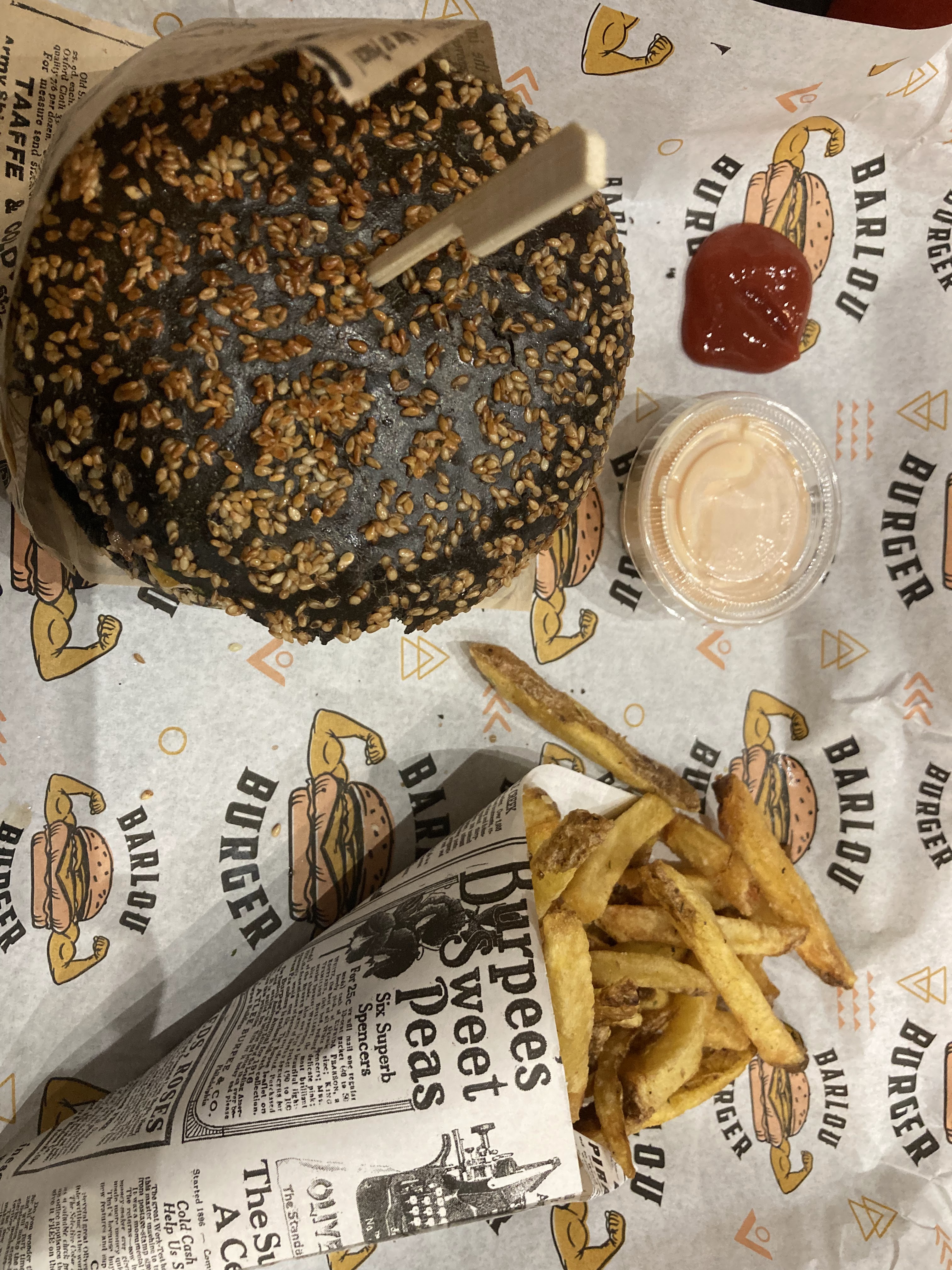 Je viens juste de déguster le burger et vraiment rien à dire ,j ai pris le barlou supplément bacon 😃 et je peux vous dire qu'entre le burger et les frites l'estomac est bien remplis . Top top!!