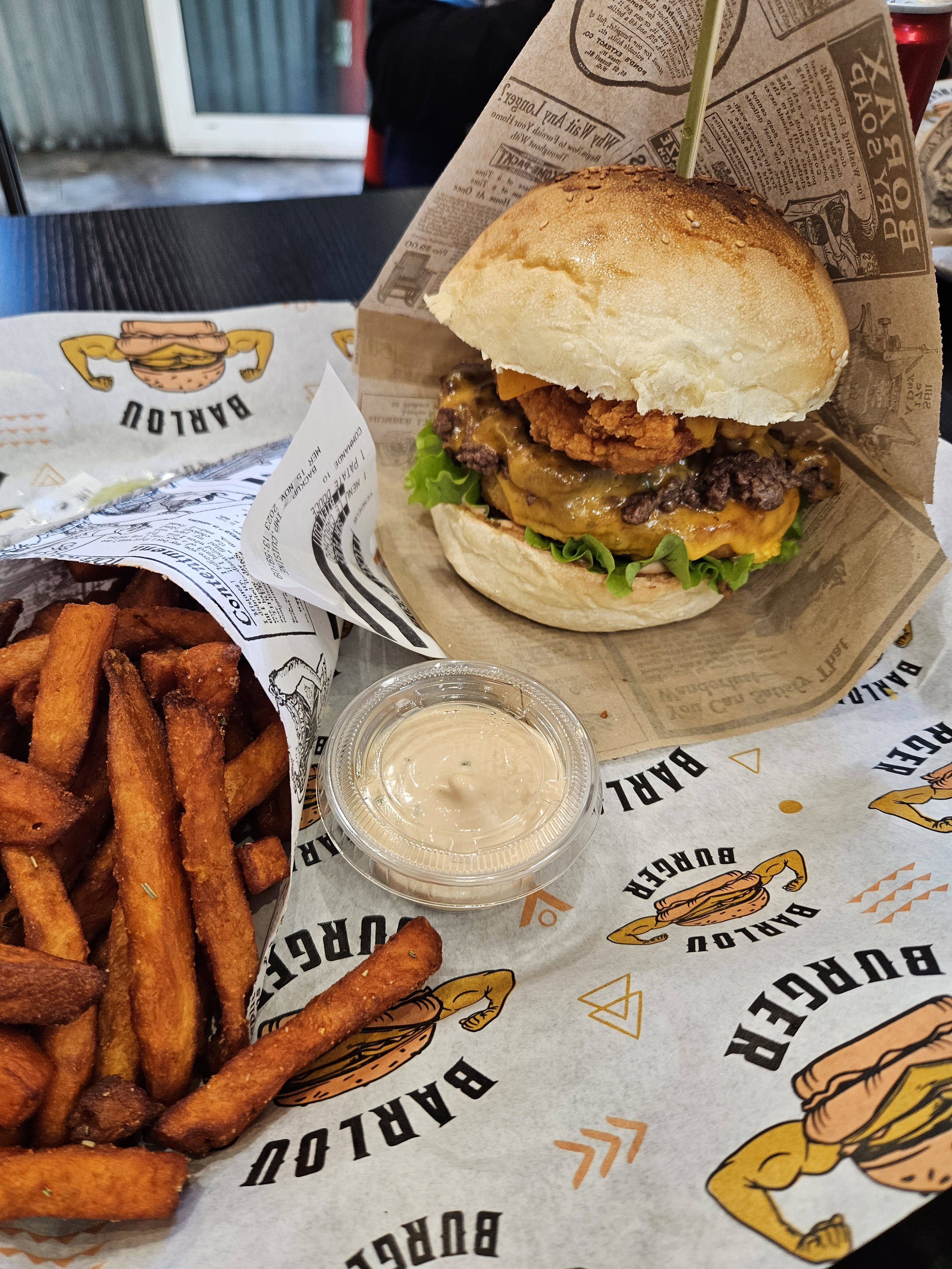Super endroit très bon accueil j'ai testé le big barlou avec les trois steacks il était très bon pareil pour les frites patate douce Je recommande 😀👍