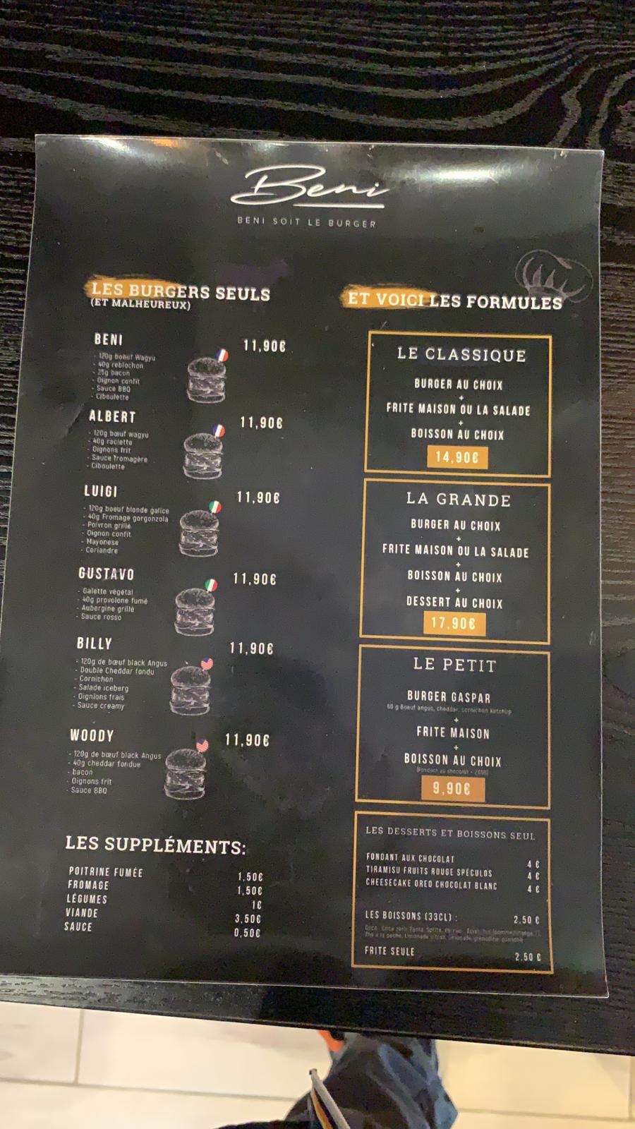 J’ai hésité mais finalement essayé et j’ai adoré !! J’y commande et y vais (2-3 fois dans la semaine) et tous les sandwich sont excellents. Je vous le commande fortement, super contente et merci Beni Burger!