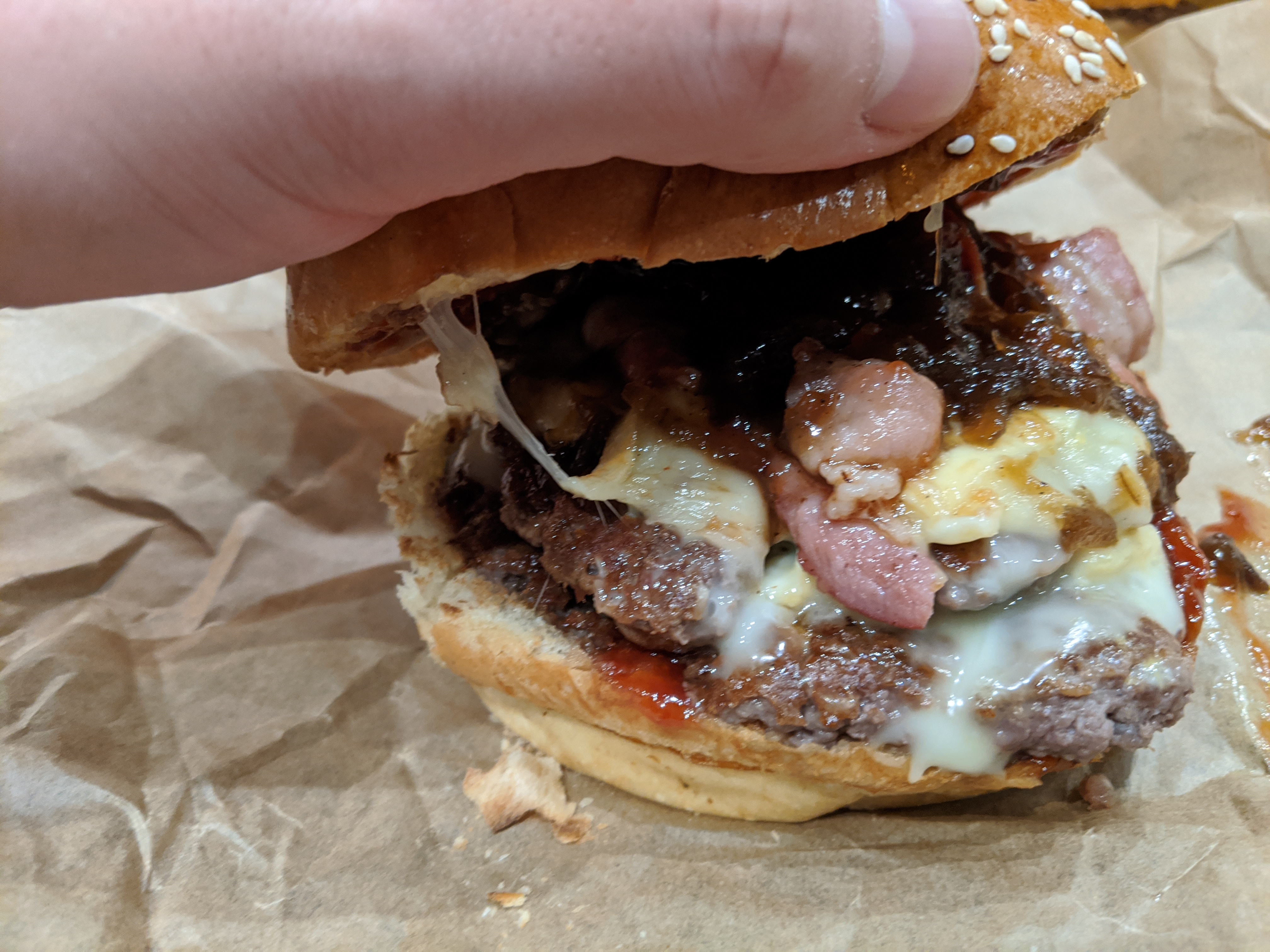 Pain très humide. Bacon presque brûlé. je n'y retournerais pas. pour le prix un MC DO est largement meilleur. Très déçue.