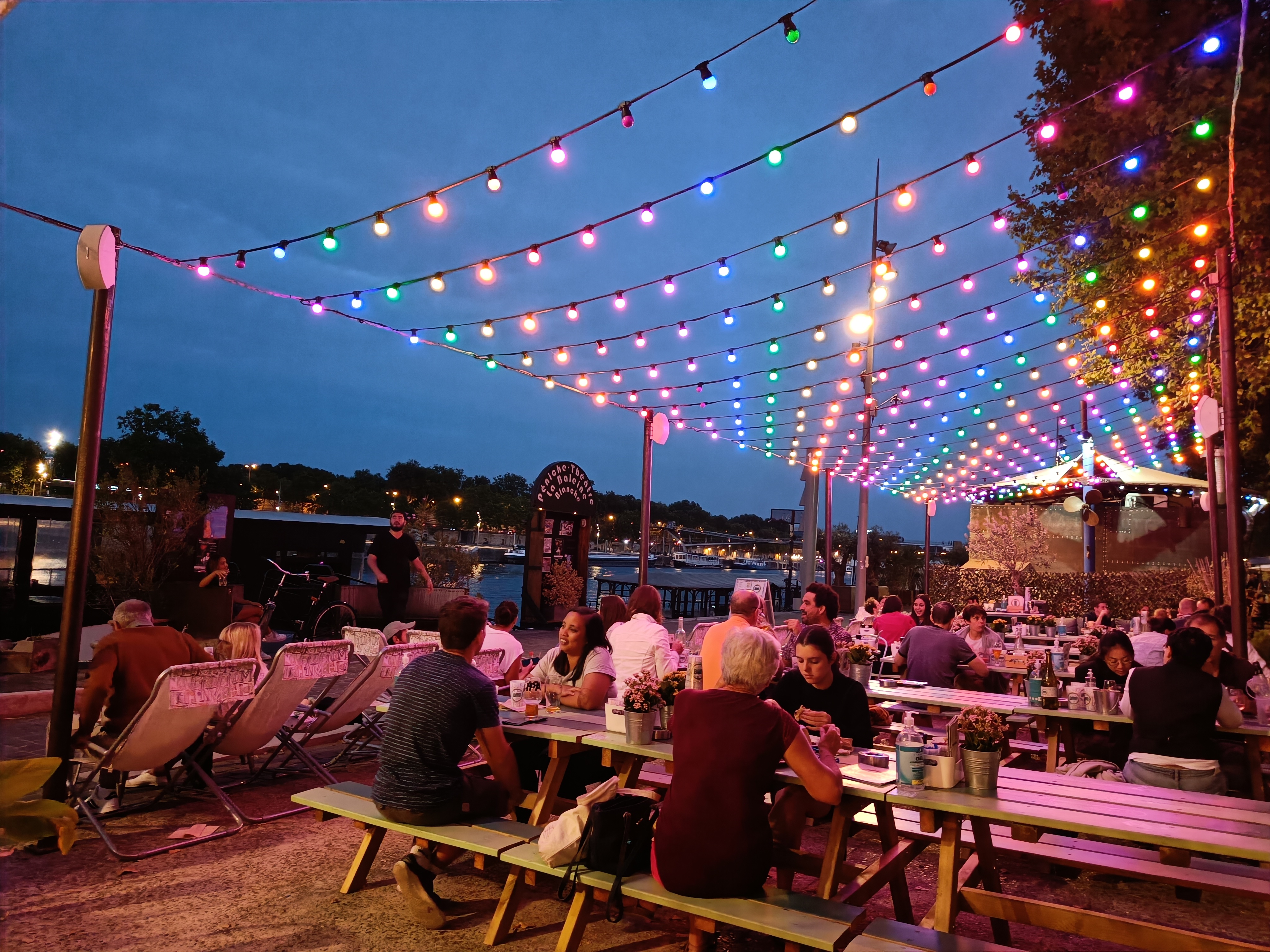 Endroit sympa sur les quais avec bonne ambiance et bonne bouffe