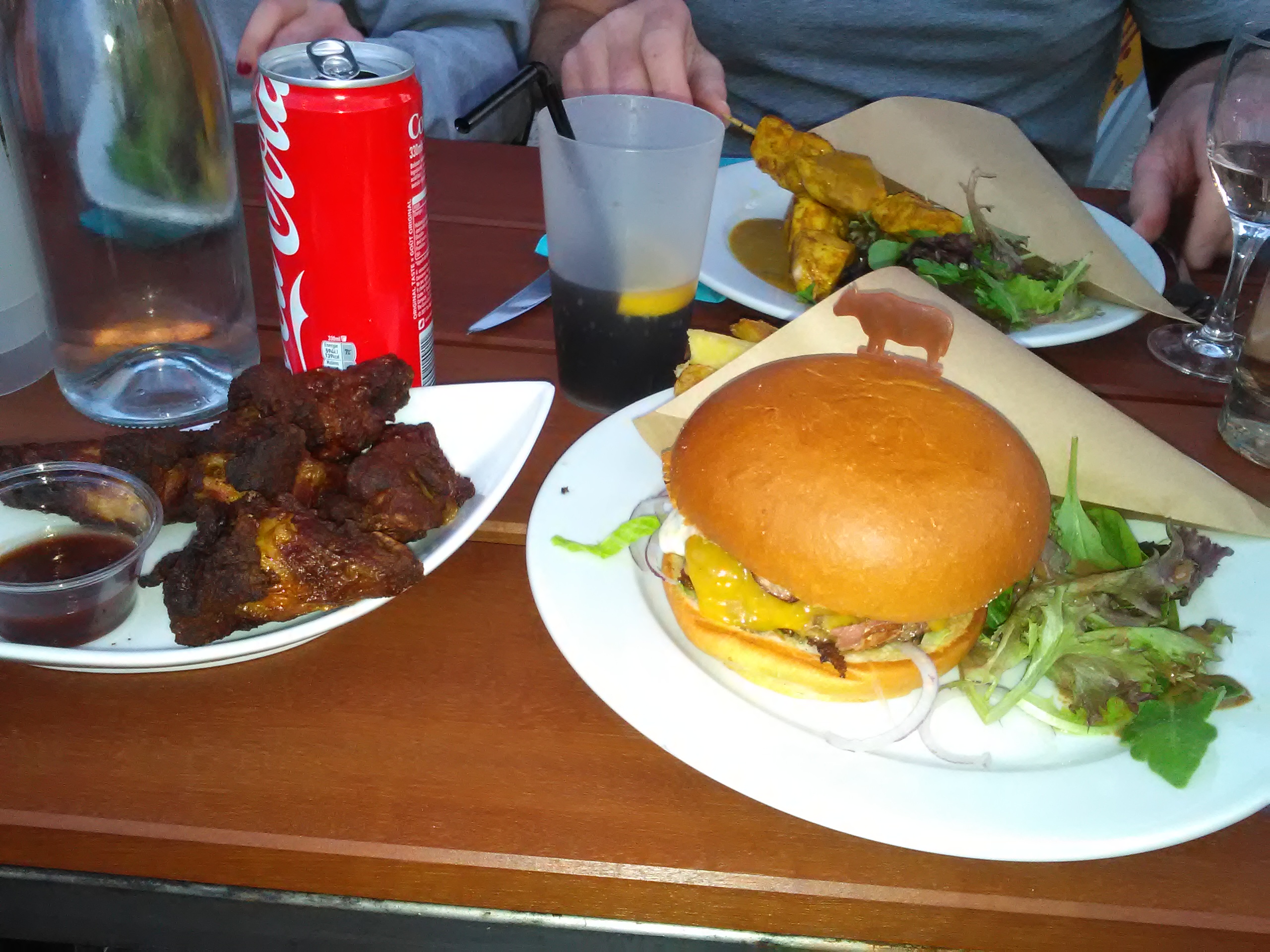 Une fois que le charme du cadre a fini d'opérer, il est temps de manger. Onion rings et mozzarella stick pas du tout au rdv. Veggie burger correct, burger avec de la viande très moyen. Dommage !