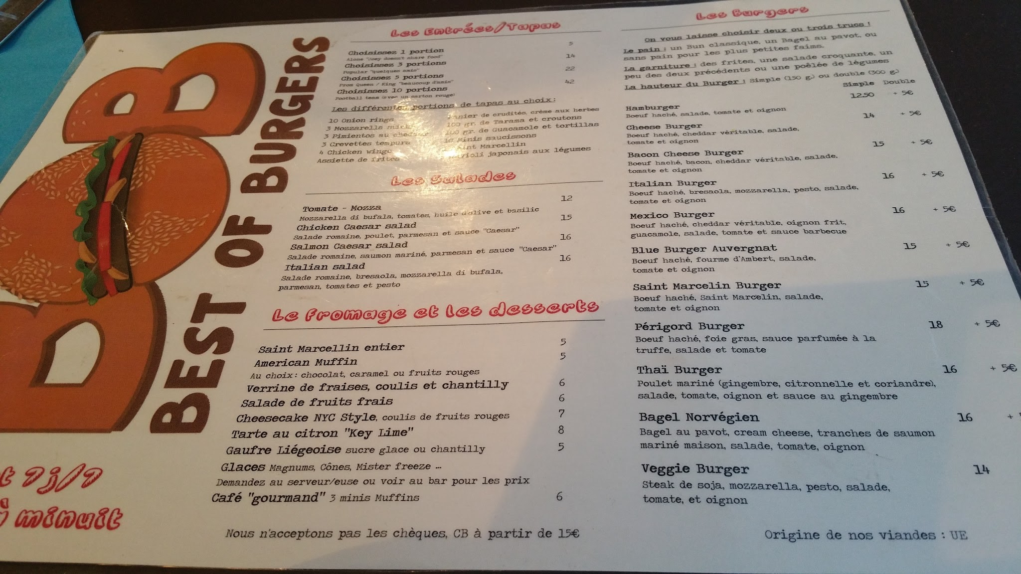 Bonne qualité de burgers, prix moyenne: 11-18 €