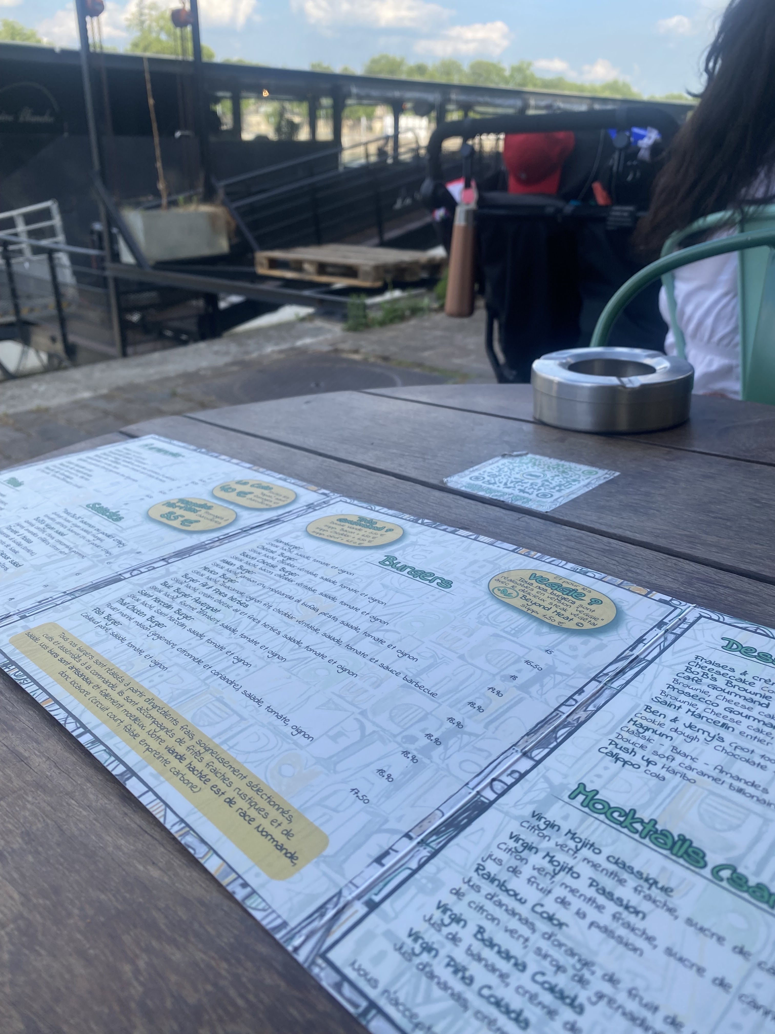 Très bonne expérience : Le cadre est vraiment idyllique, au bord de la Seine avec un espace ouvert. Le personnel est agréable et souriant. Les plats sont relativement consistants et garnis avec des ingrédients de qualité. En terme de prix, c'est légèrement cher (14€ pour un burger) mais cela ne reste pas exorbitant.
