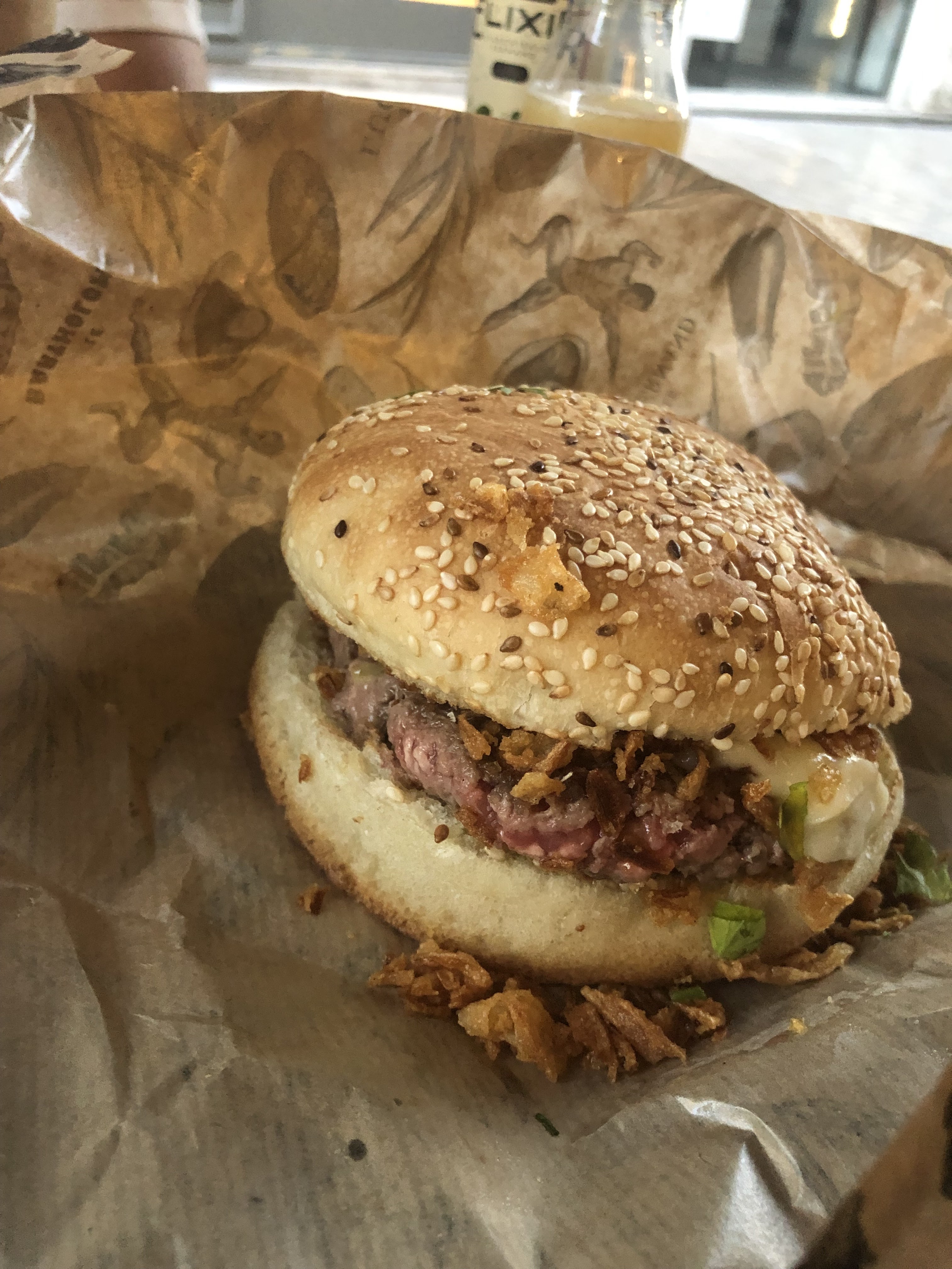 Hamburgersi revisités et superrrrr bons. Choix de la cuisson ingrédients variés. Je conseille fortement 🤗