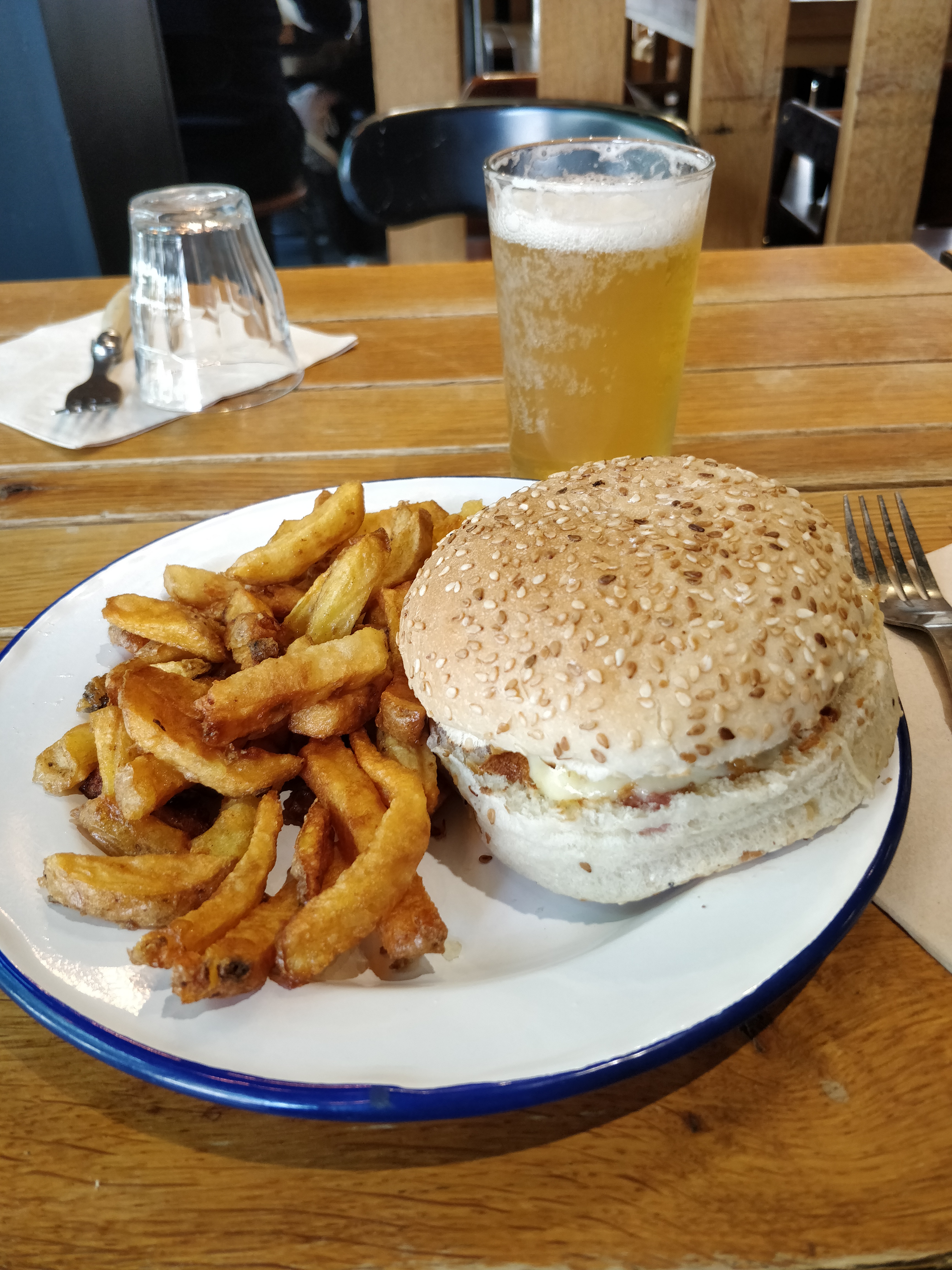 Burger pas mauvais, mais on trouve bien mieux à Orléans et pour moins cher. Les frites étaient froides, car préparées à l'avance, et en plus ce n'étaient pas le bon assaisonnement,mais refus de nous les changer! On croit rêver ! Plus de bière, plus de limonade au citron... Ça fait beaucoup pour 15€.