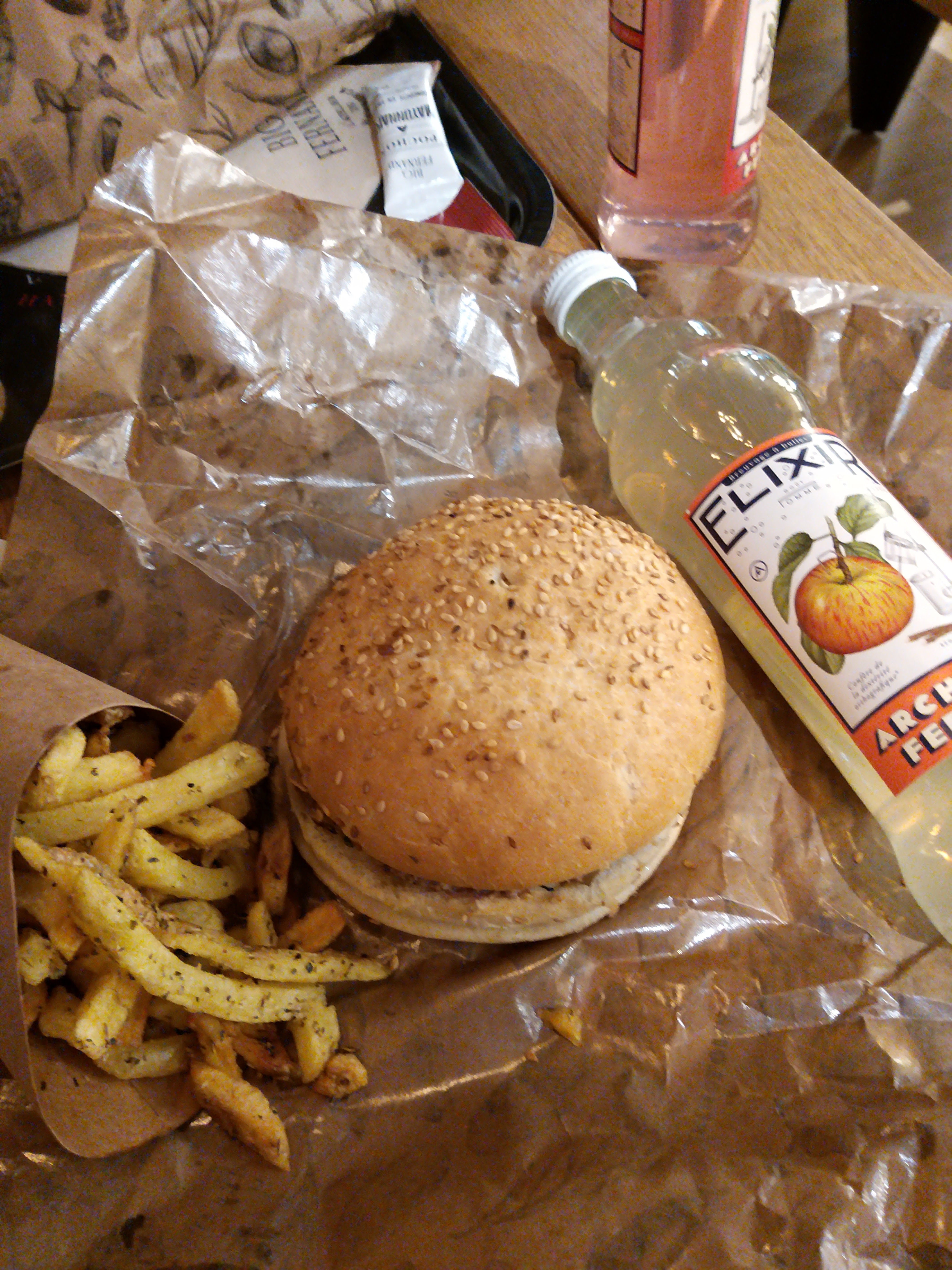 Les hamburgers étaient bien meilleur que McDo, sauf pour le végétarien très décevant .. Les frites ont vraiment perdu en qualité, et la glace tarte tatin n'était vraiment pas folle. Pour un mangeur correcte cela ne rassasie pas vraiment !