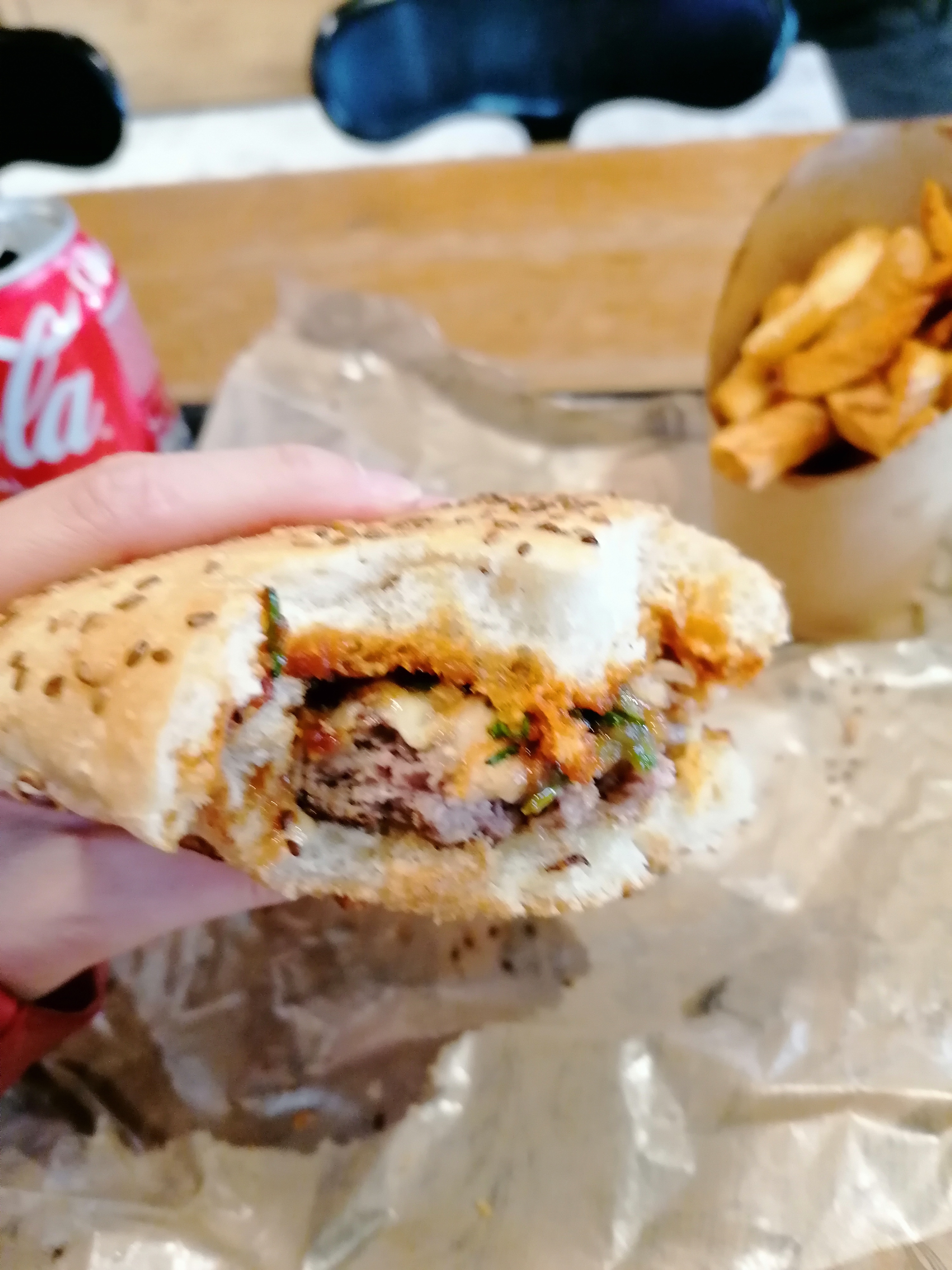 Le burger est très bon, dommage qu'il était tiède, pas assez chaud. Sûrement dû au fait d'être en début de service. Pour les frites, j'ai été déçu par les aromates ajoutés. Celles aux herbes gâchent le goût de la frite, celle au paprika pareil. Au final moyen comme expérience, mais cela reste un très bon burger.