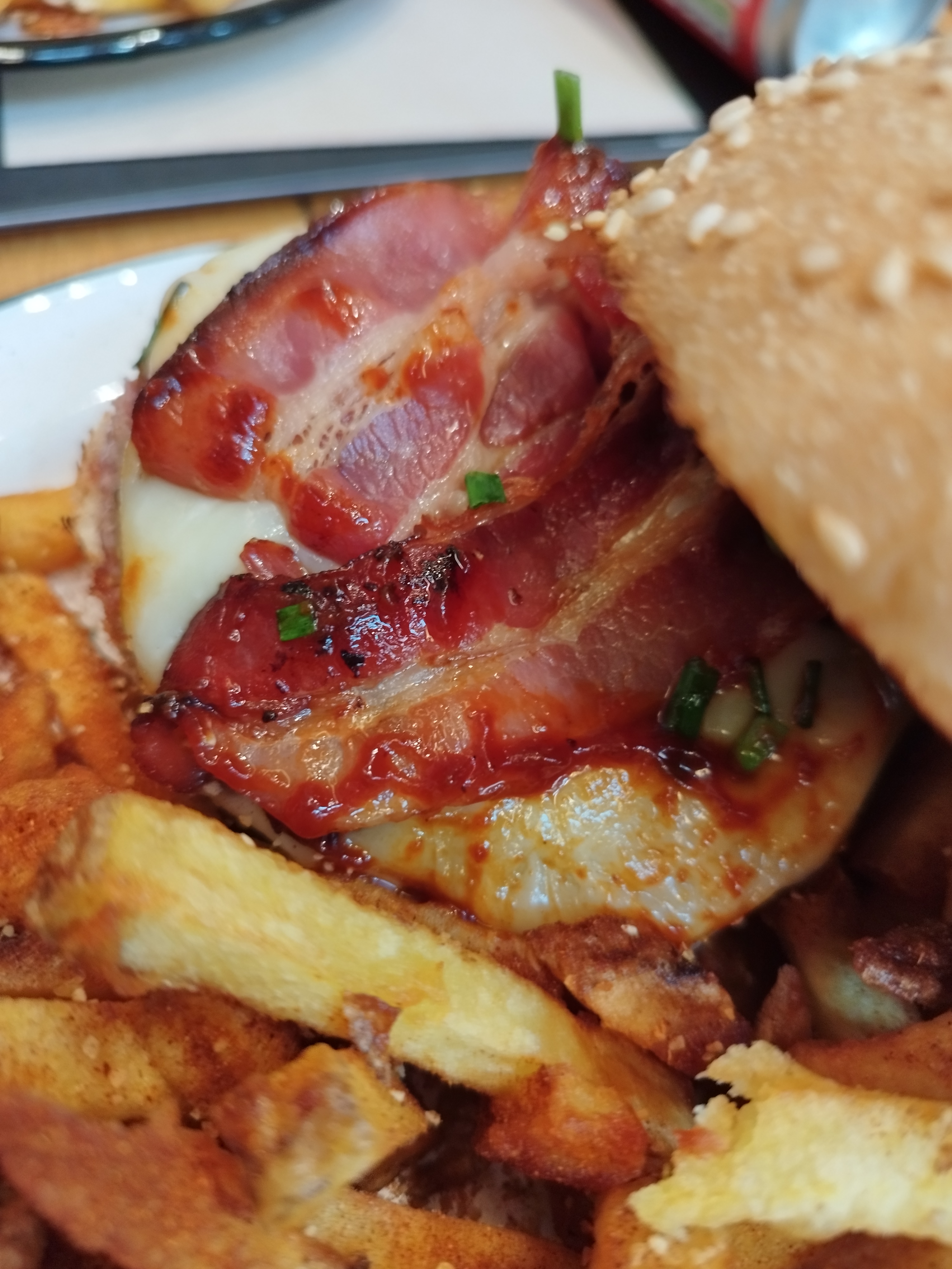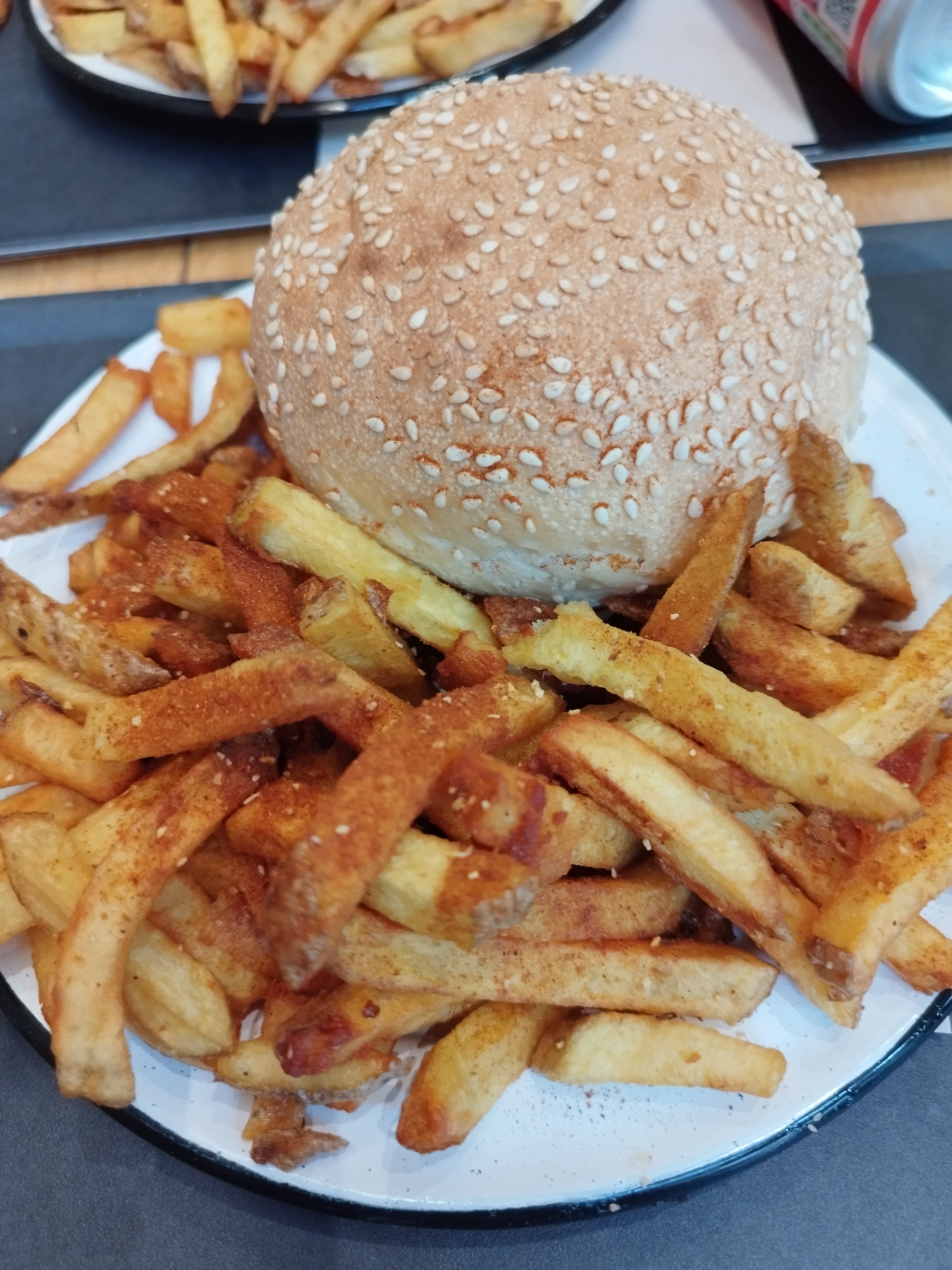 Les hamburgers très bon même délicieux, mais franchement leurs frites maison zéro pointé très grasse on a dû avoir une fin de plat que des miettes et petits bouts.une faute
