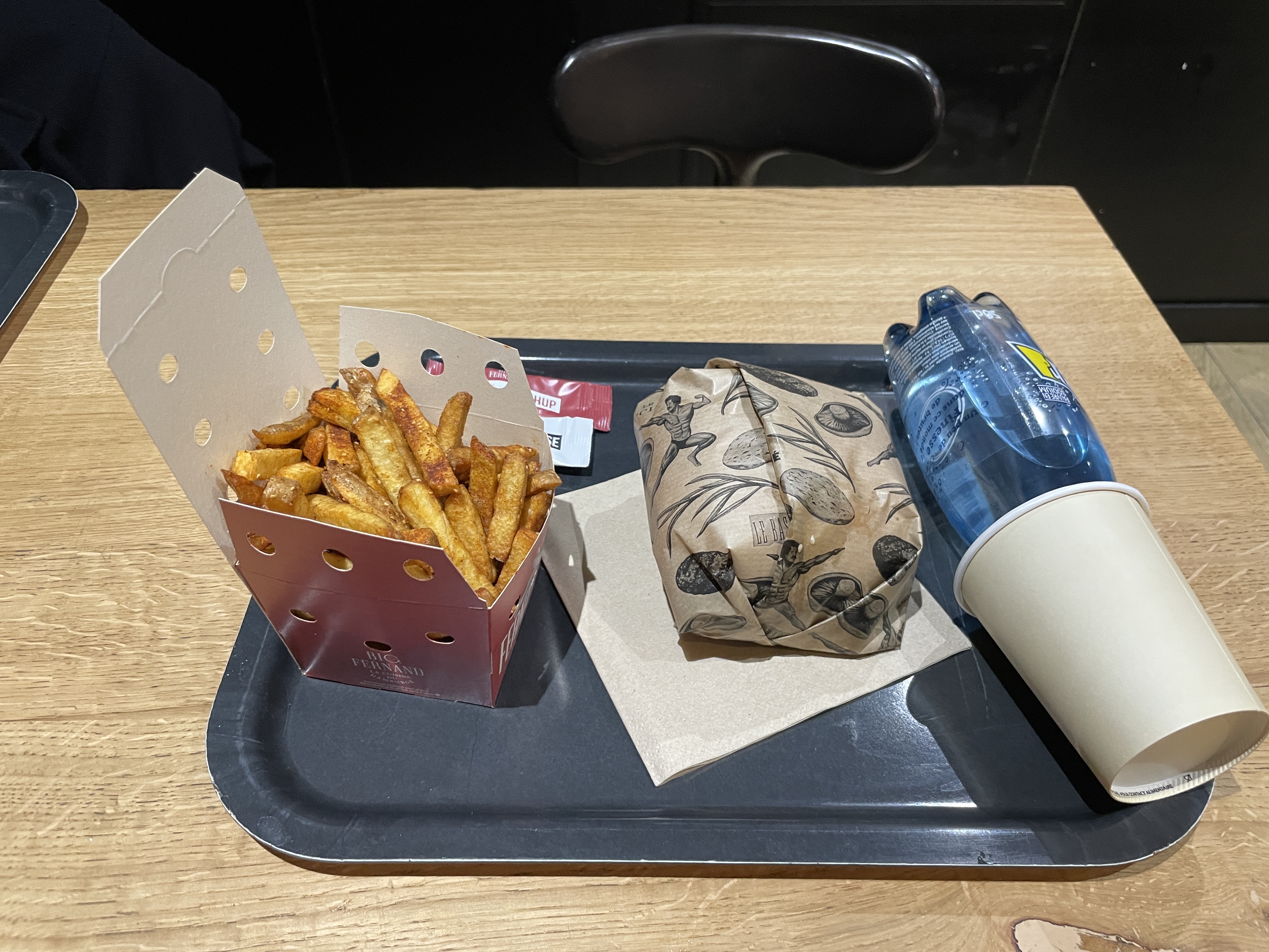 Pour le prix des menus des box de frites à moitiés pleins et des burgers froids. Vue que nous mangions sur place- pas de rince coudes ... honnêtement allez à puteaux c’est bien mieux. Enfin, pour l’instant.