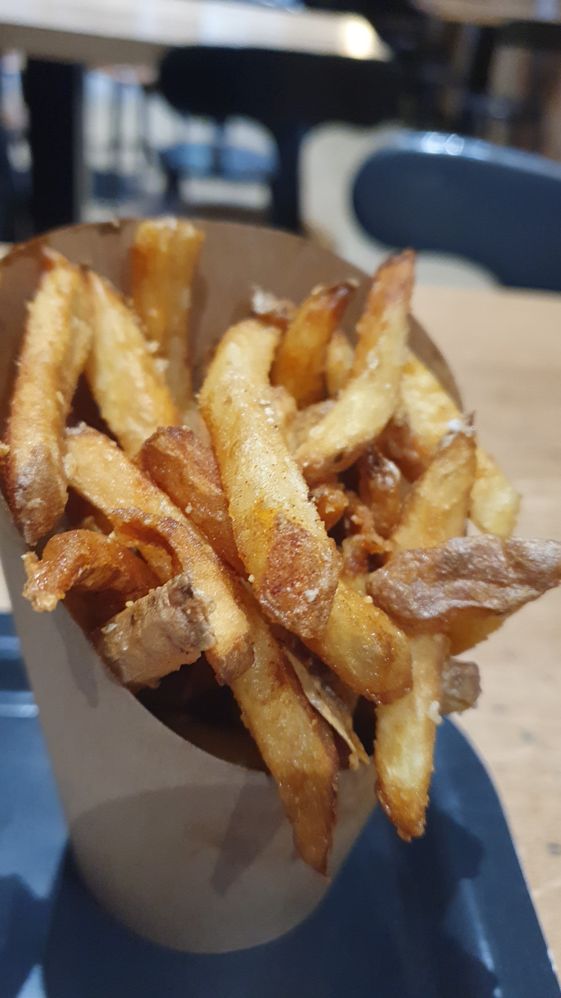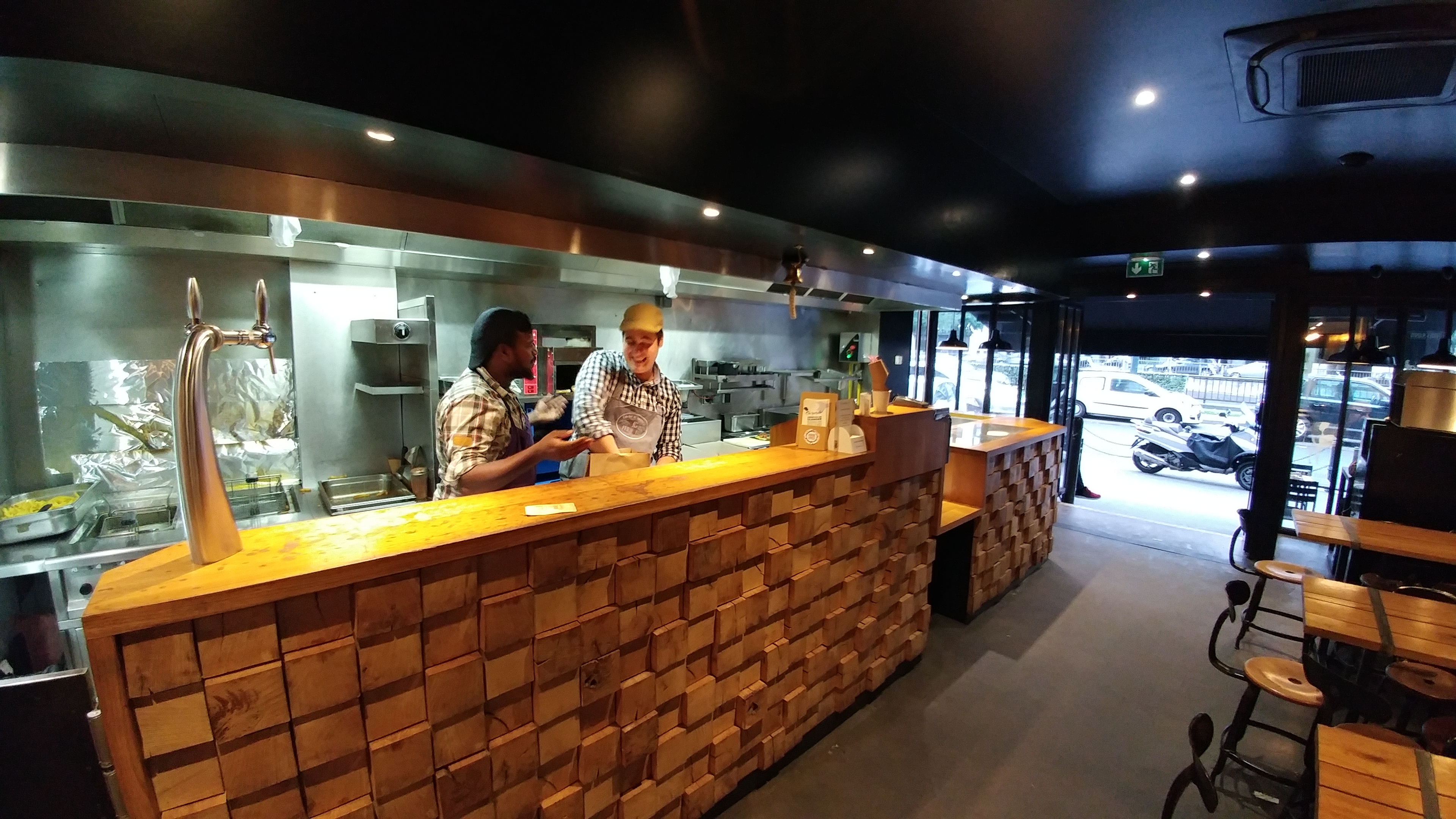 Le staff est super sympa, burgers bons (pas donnés), frites sont trop cuites à mon goût mais quand même bonnes.