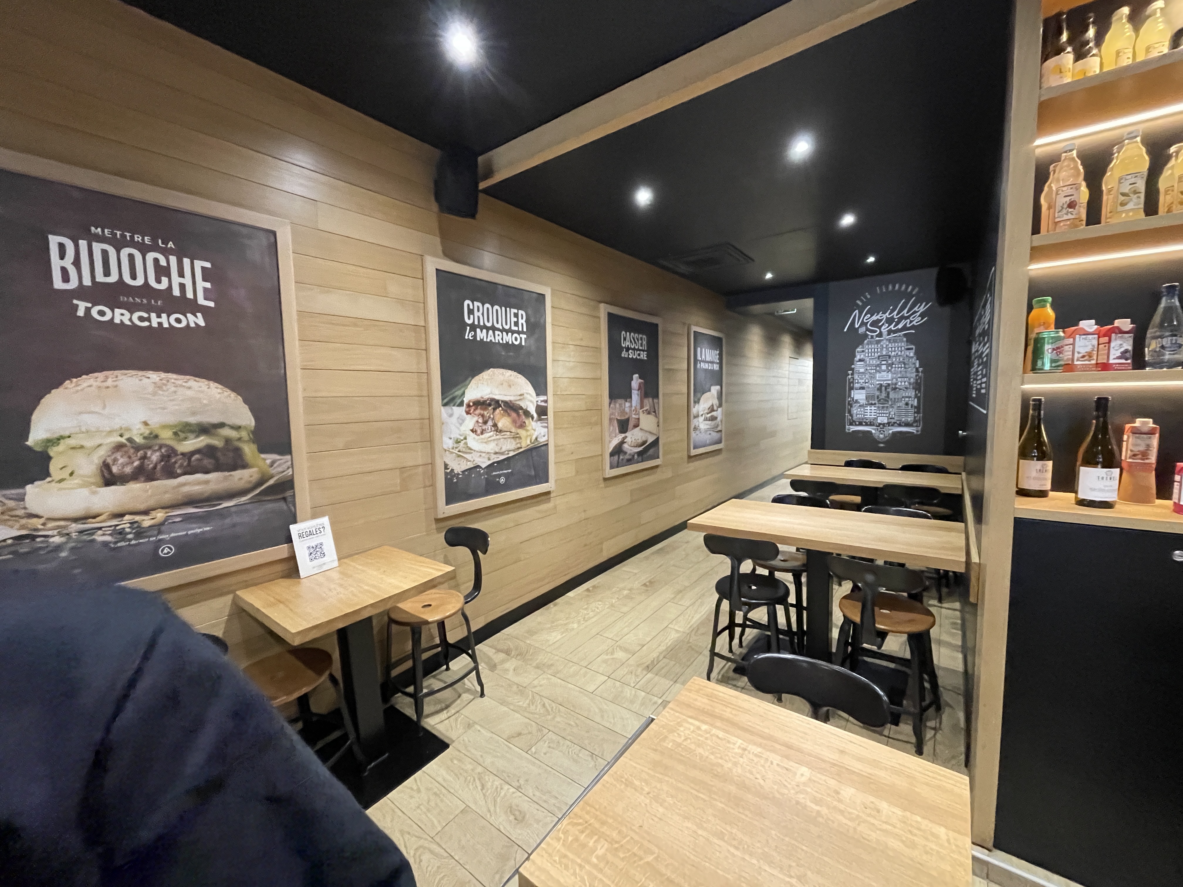 3 étoiles uniquement parce qu'ils ont le mérite d'être là et que pour trouver où manger à Neuilly c'est pas évident avec un budget de 15 euros. Le cadre est étroit mais malgré tout j'ai eu de la place pour m'asseoir et manger tranquillement. Le burger bartholomé n'est pas ouf du tout la sauce bbq ne va pas avec ce sandwich c'est écœurant, ça c'est de ma faute c'est moi qui n'est pas choisi le burger à mon goût mais déçu. Comparé à Mac Donald le steak est bien meilleur mais il rempli pas assez la surface du burger alors on a l'impression d'avoir un mini truc dans le burger. Les frites était malheureusement trop cuite, c'est pas top top. Personnel accueillant.