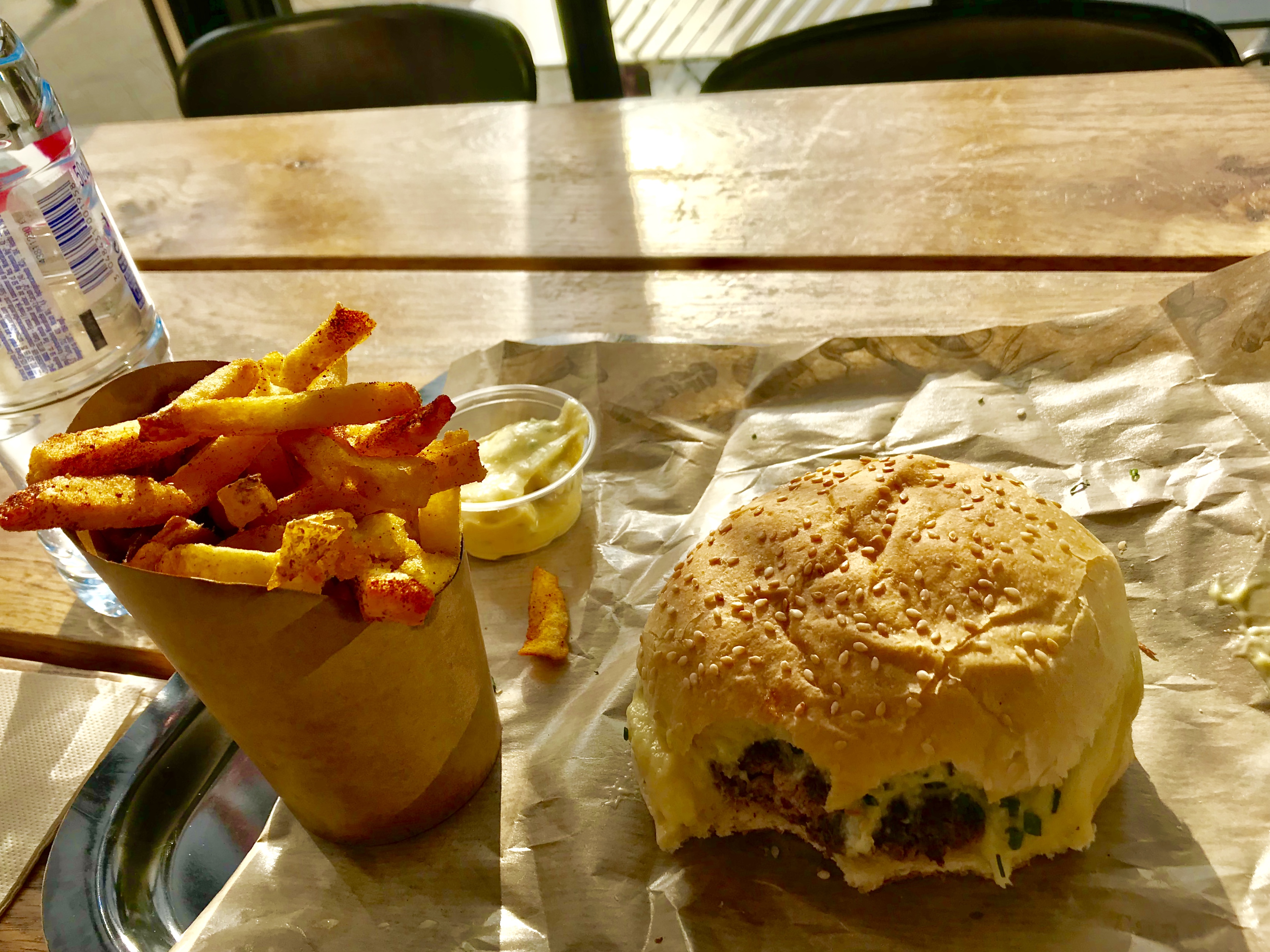 Frites molles. Burger bon mais pas assez pour justifier ce prix. Boisson sans goût et soi disant nature. Fessée insipide. Pour 40e à 2.. bof bof. Mieux vaut une bonne petite brasserie