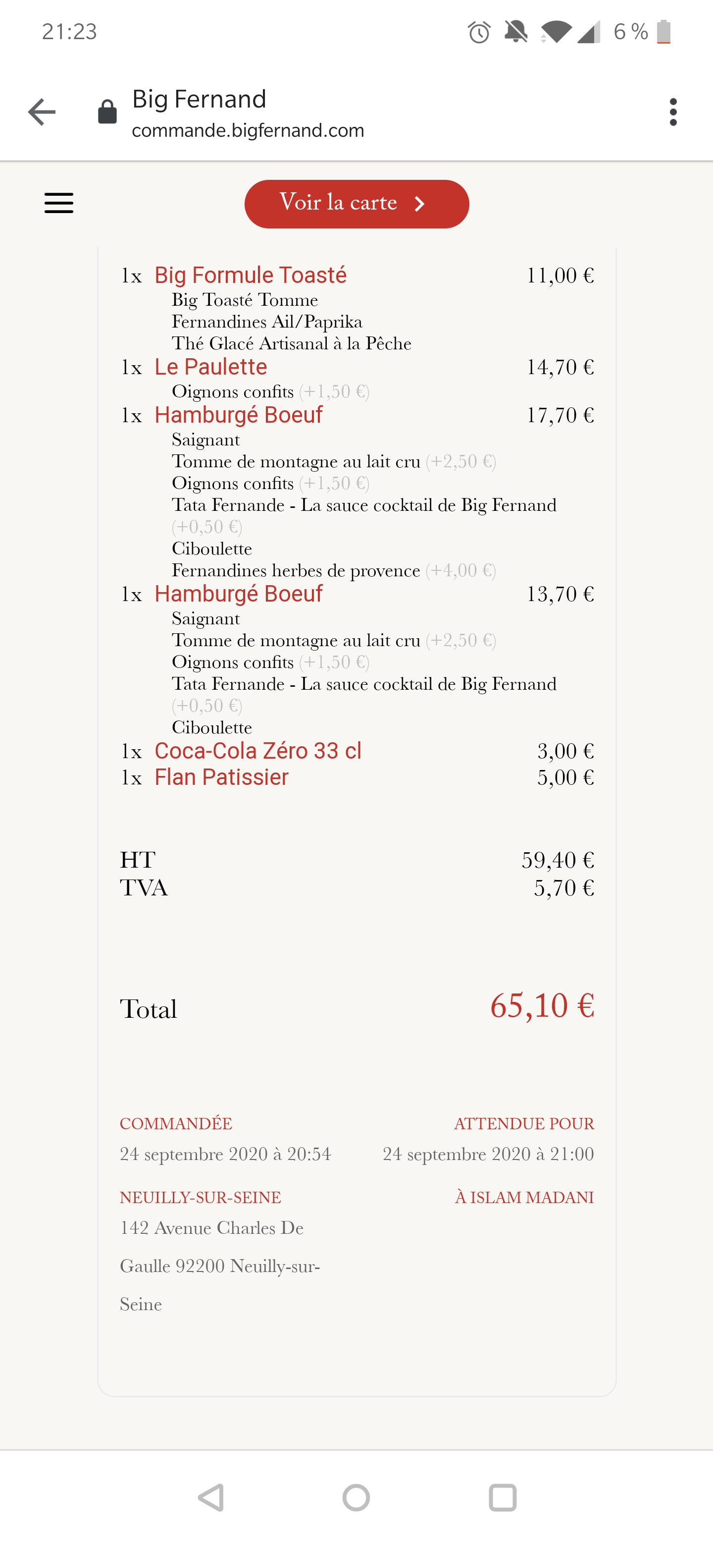 Super déçu et pourtant c est la 2eme fois que je passe à celui de Neuilly et je suis un habitué de la franchise ! 2 formules à emportés dont une en effet Big : Dans l effet Big à peine plus de raclette 2 steak bien trop cuit pour un à point (viande bien grises sans moelleux) la portion de frite identique à l autre formule 2 pauvres sachet de ketchups et 1 mayonnaise Le burger normal était froid arrivée à la maison alors que le Big non et il y a une raison Tout a été mis dans un seul sac .... c est vrai l économie sur 40€ de commande doit être énorme Et donc les produits frais à savoir boisson et mousse au chocolat sur le ptit burger on a du les mettre au frais pour refroidir mais trop tard pour le burger. Et le routage de gueule final fut le flan pâtissier bon déjà la boîte est pas grande soit mais si en plus dans la boîte votre part n est pas complète et il manque 2 cm de pointe ... ça c était flagrant pour la personne qui a préparée la commande et aurait du corriger ceci. Voilà le restaurant était vide à 19h un dimanche donc toute ces erreur ne sont pas du à une charge de commande mais juste du foutage de gueule pour des clients qui se déplacent pour prendre à emporter !!!!!!!! PS les Fernandines étaient froid biensur mais surtout molles !!!!!!!!