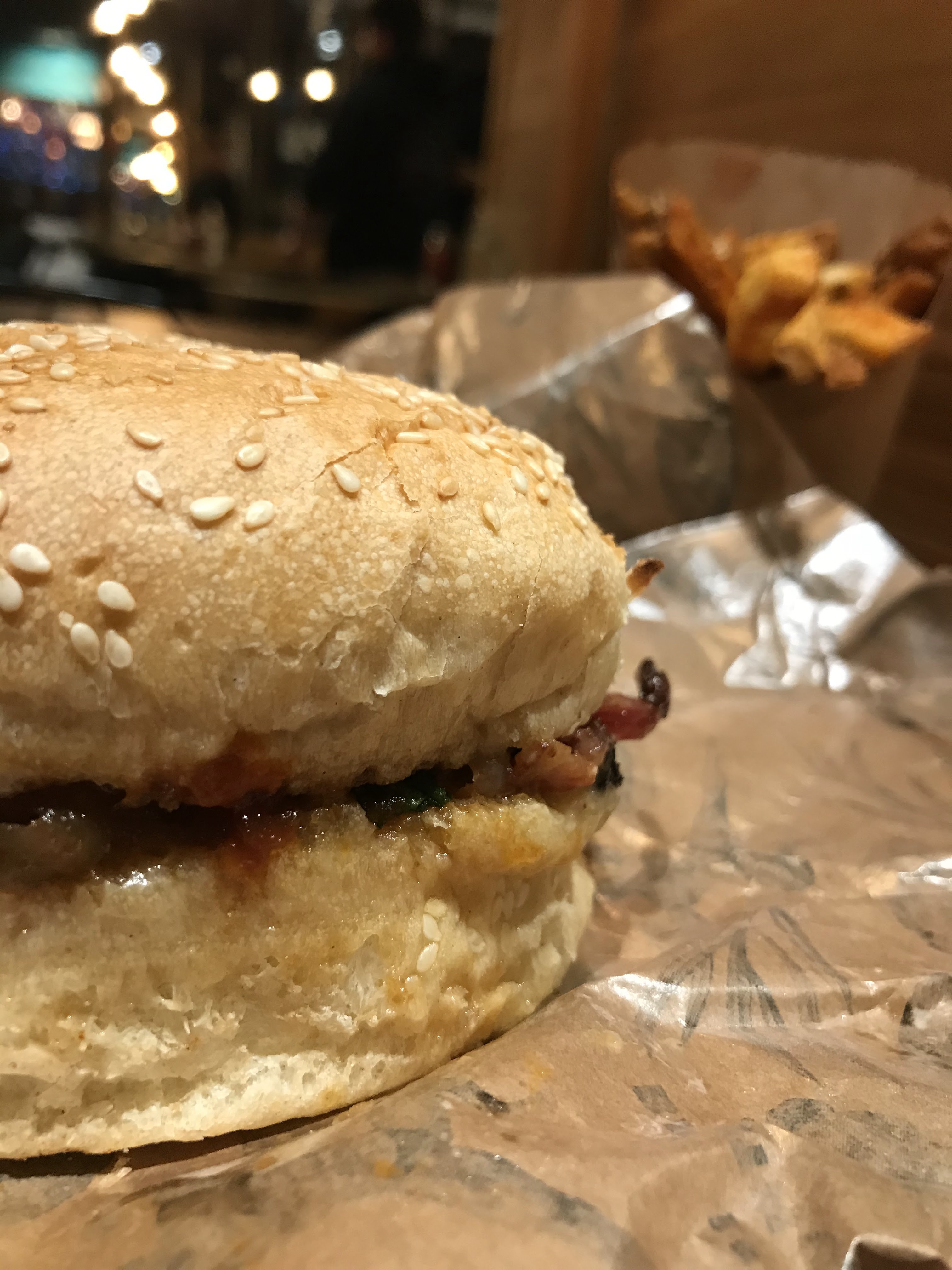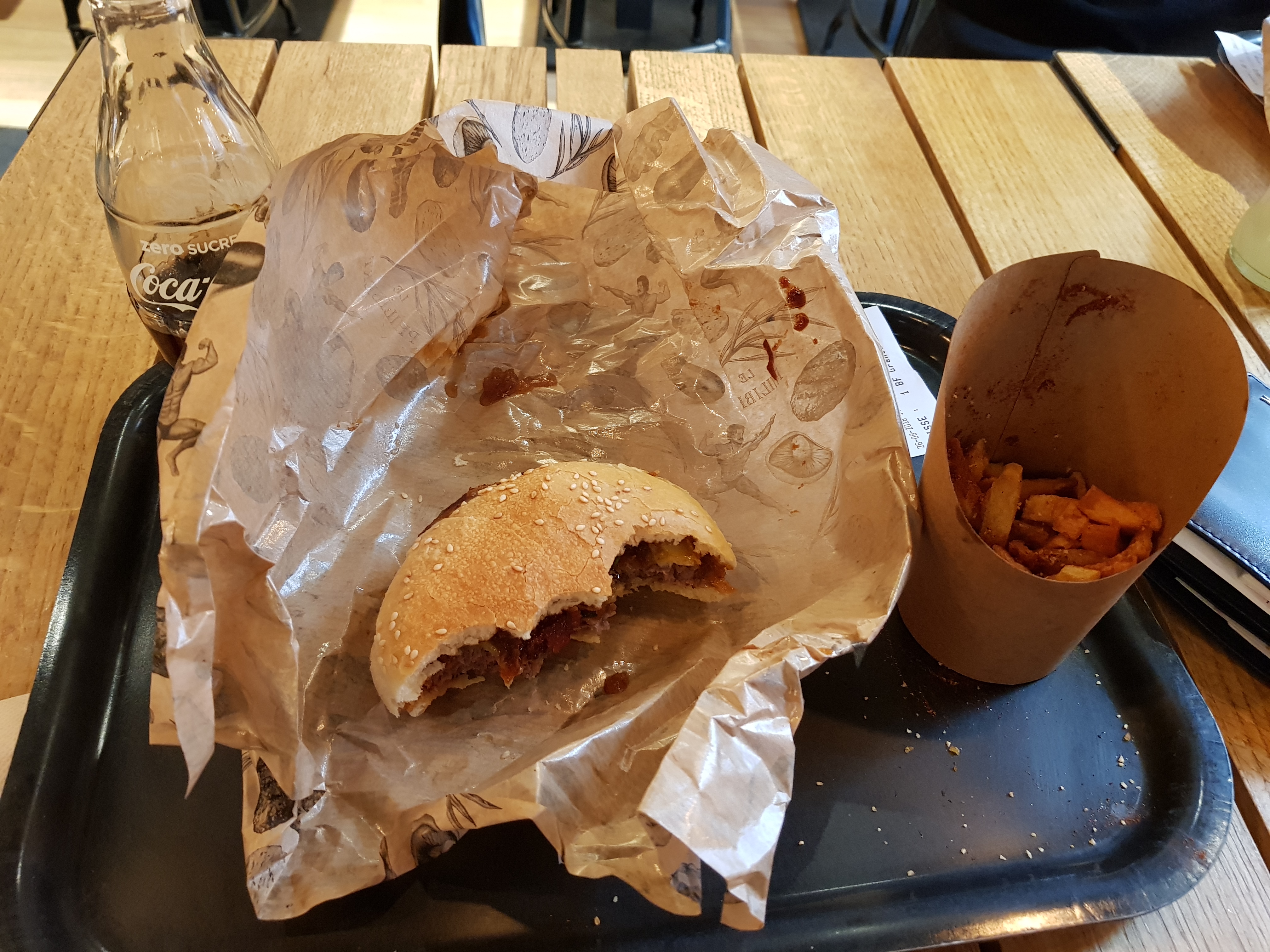 J'y ai mangé un burger avec Olivia, qui est végétarienne, mais genre végéta vraiment rien. On a pu avoir un burger de carnivore pour moi, et un végétarien pour elle. Nous nous sommes régalés, c'était très bon, très rapide, à un prix abordable, encore plus si vous êtes étudiants. Je recommande aussi bien le burger, que Olivia, qui est une très belle mangeuse d'herbe.