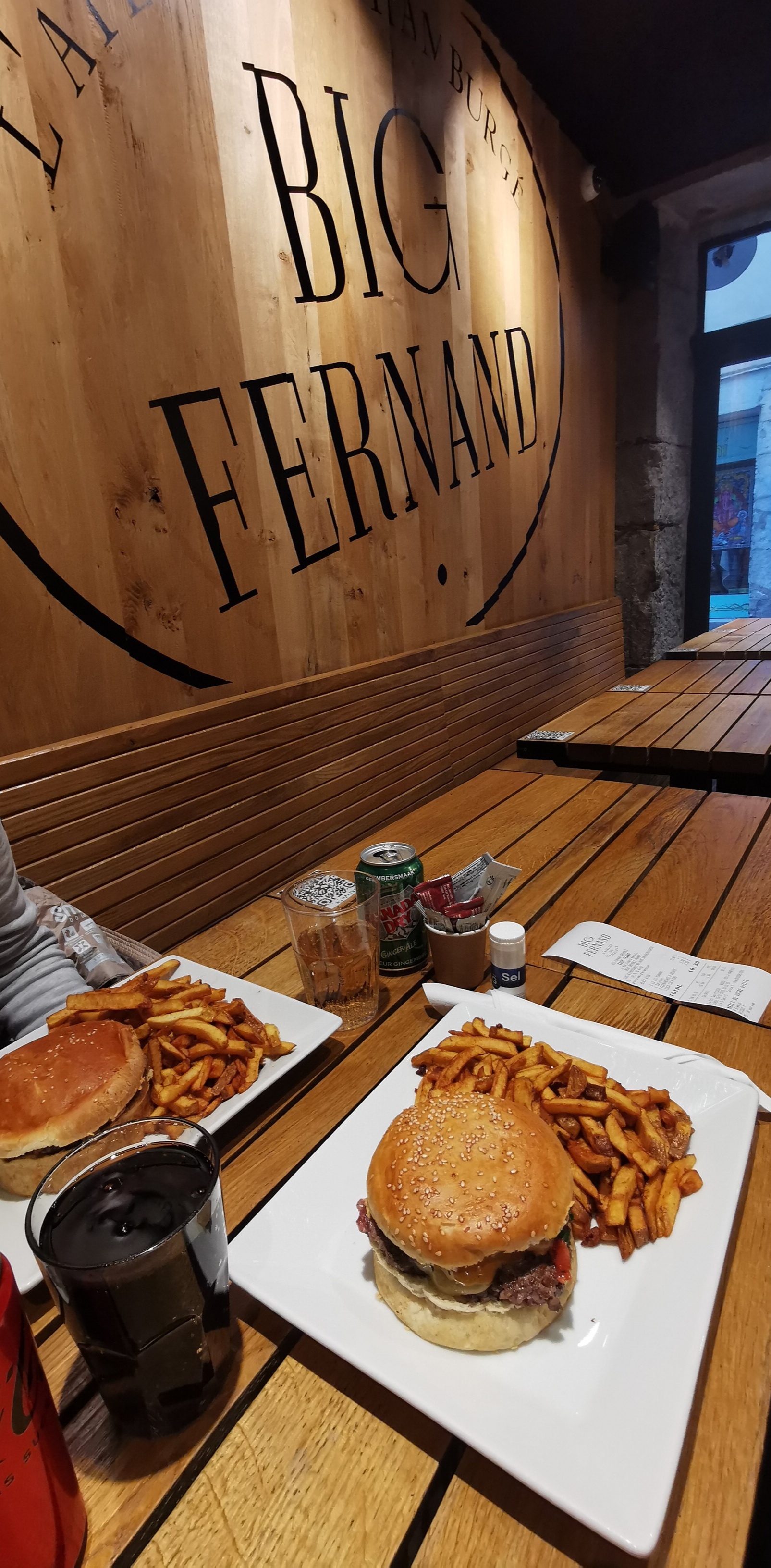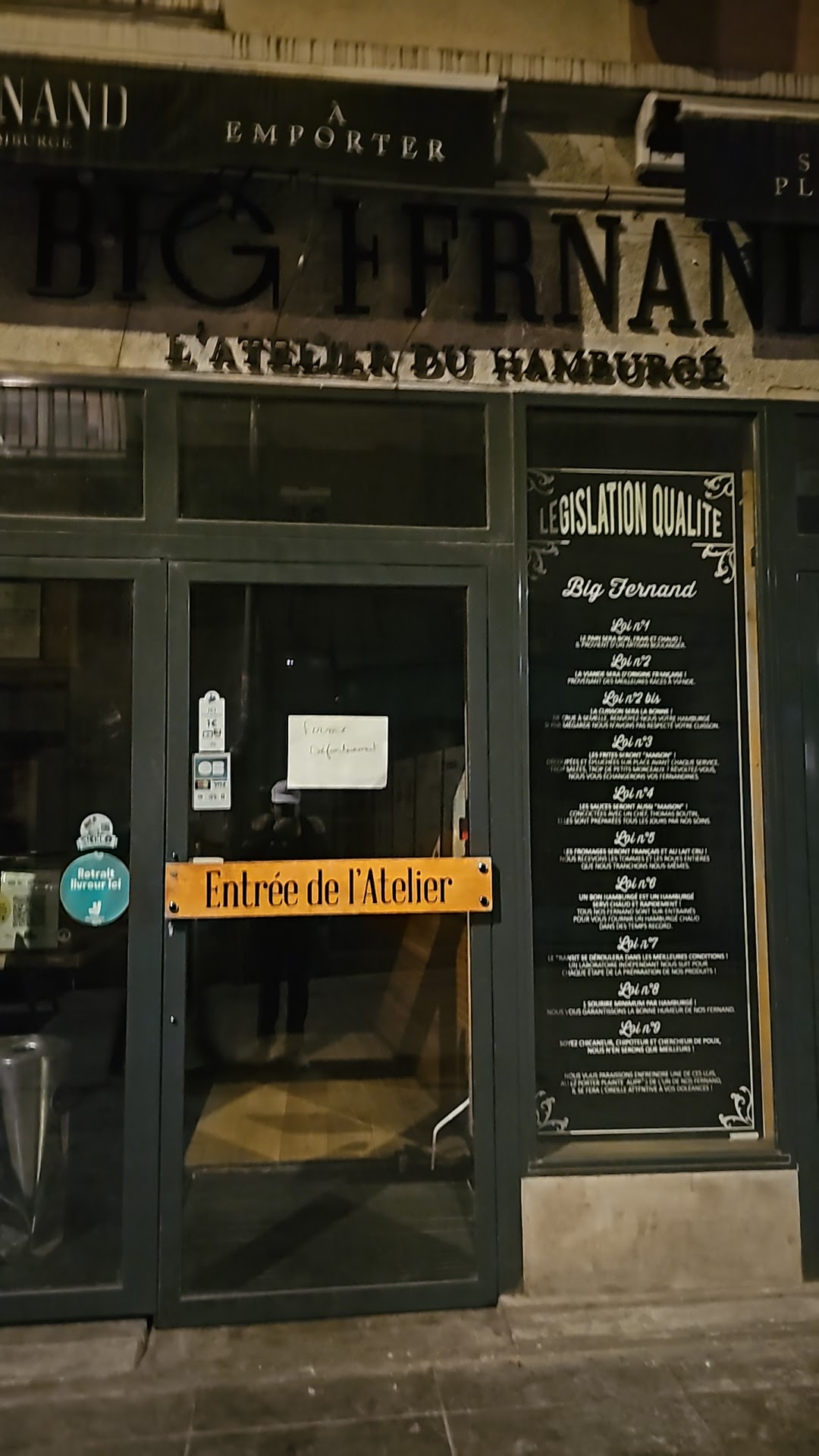 Déjà il faut comprendre que ce n'est pas parceque l'on propose des burger ( ici hamburgé ) que l'on est un FastFood. Certe c'est rapidement préparé mais au moins c'est fait devant vous et quand vous le dégusterez, vous comprendrez ce pourquoi Big Fernand est réputé. 15€ le menu pour manger un bon hamburgé et des frites originales ( ail - paprika / fines herbes / natures ) et une boisson elle aussi originale ^^ : ils font leur propre limonade. Grenadine Menthe poivré / Pomme Réglisse / Citron ) : Elles en valent vraiment le coup ! Évidemment des soda, des bière sont disponibles. Pour finir l'ambiance est cool et l'humour est incrusté dans la salle ( littéralement ;) )