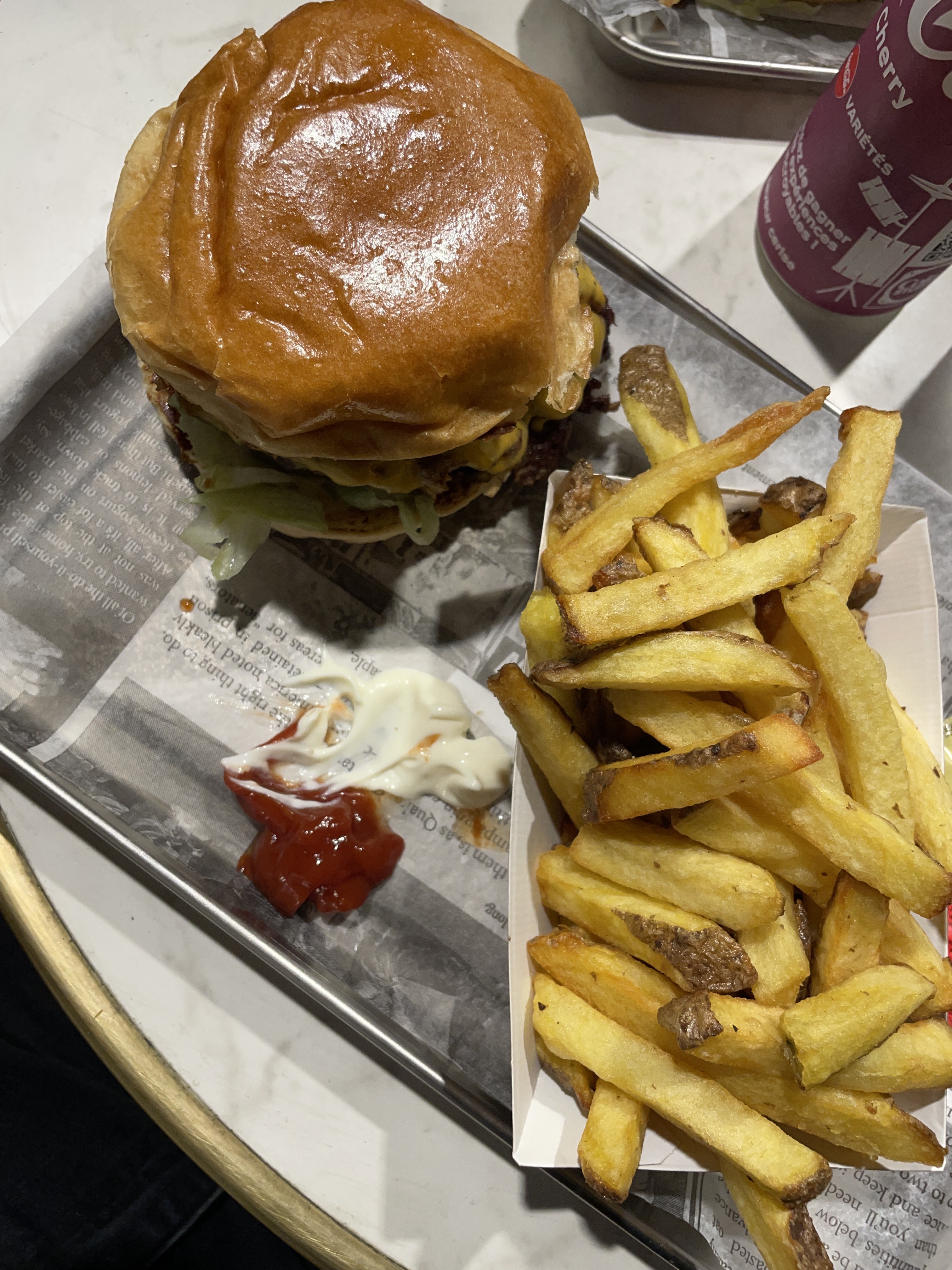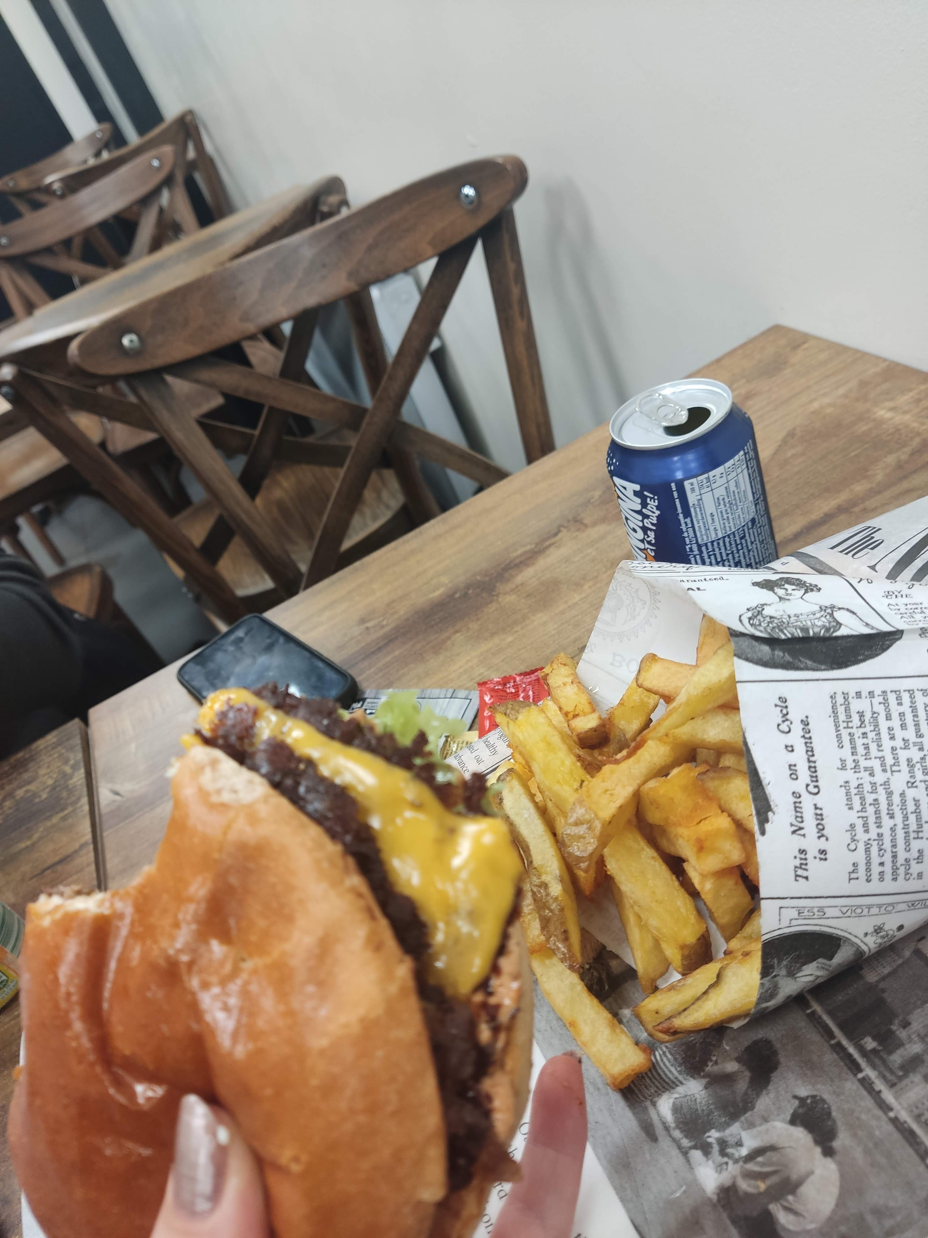 Tout est incroyable, le Burger et les frites maison préparé devant nous super bon ! Le service est top, tout est clean ! Je recommande x10000 À très vite