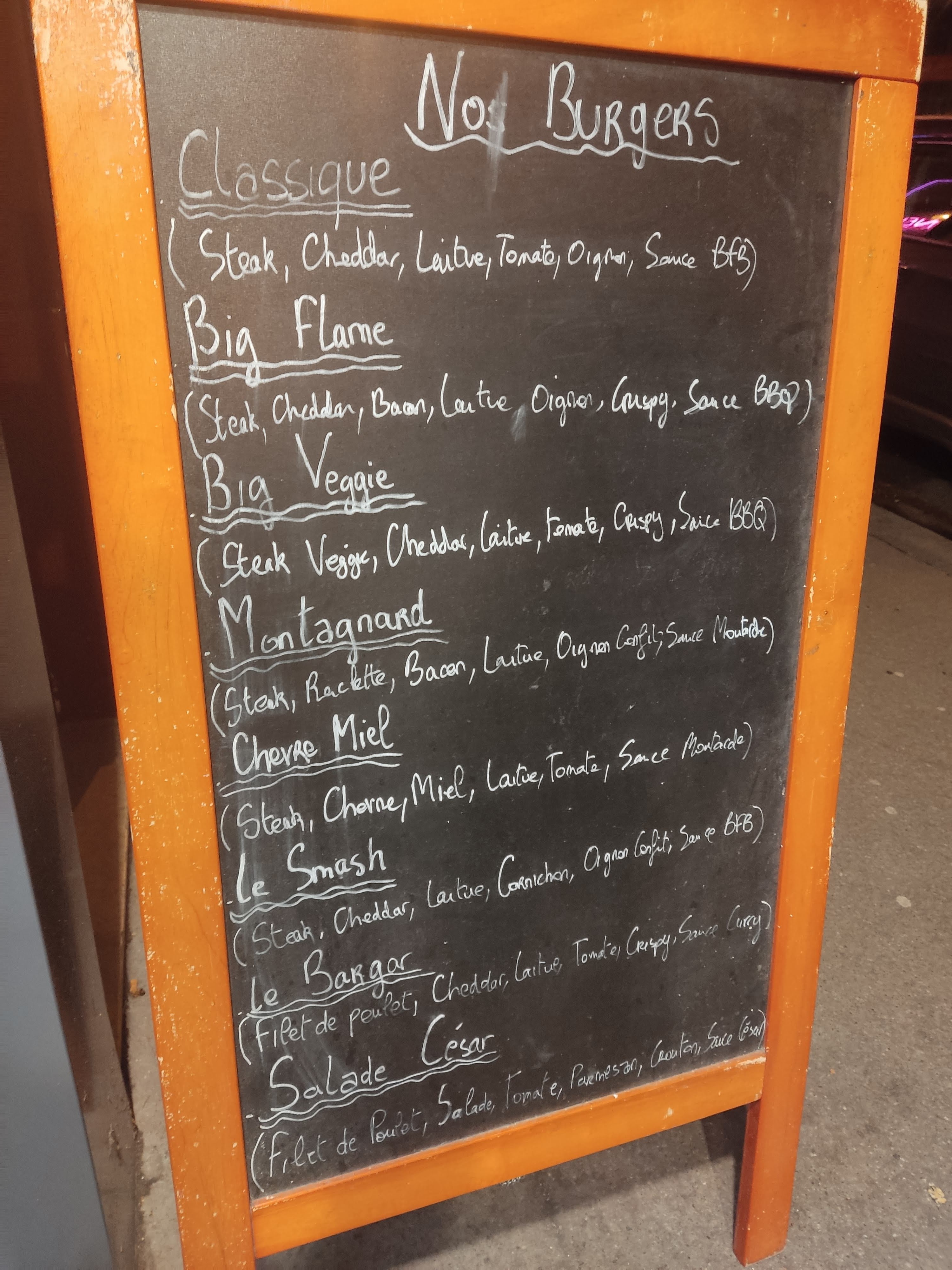 Super ! Ça faisait longtemps que je n’avais pas mangé de si bon burgers ! Des produits frais et de qualité ce qui donne des burgers vraiment savoureux. Je vous recommande le « Big Flame » vous ne serez pas déçu. Pour les plus gourmands n’hésitez pas à goûter leur fameux tiramisu fait maison. Je reviendrais !
