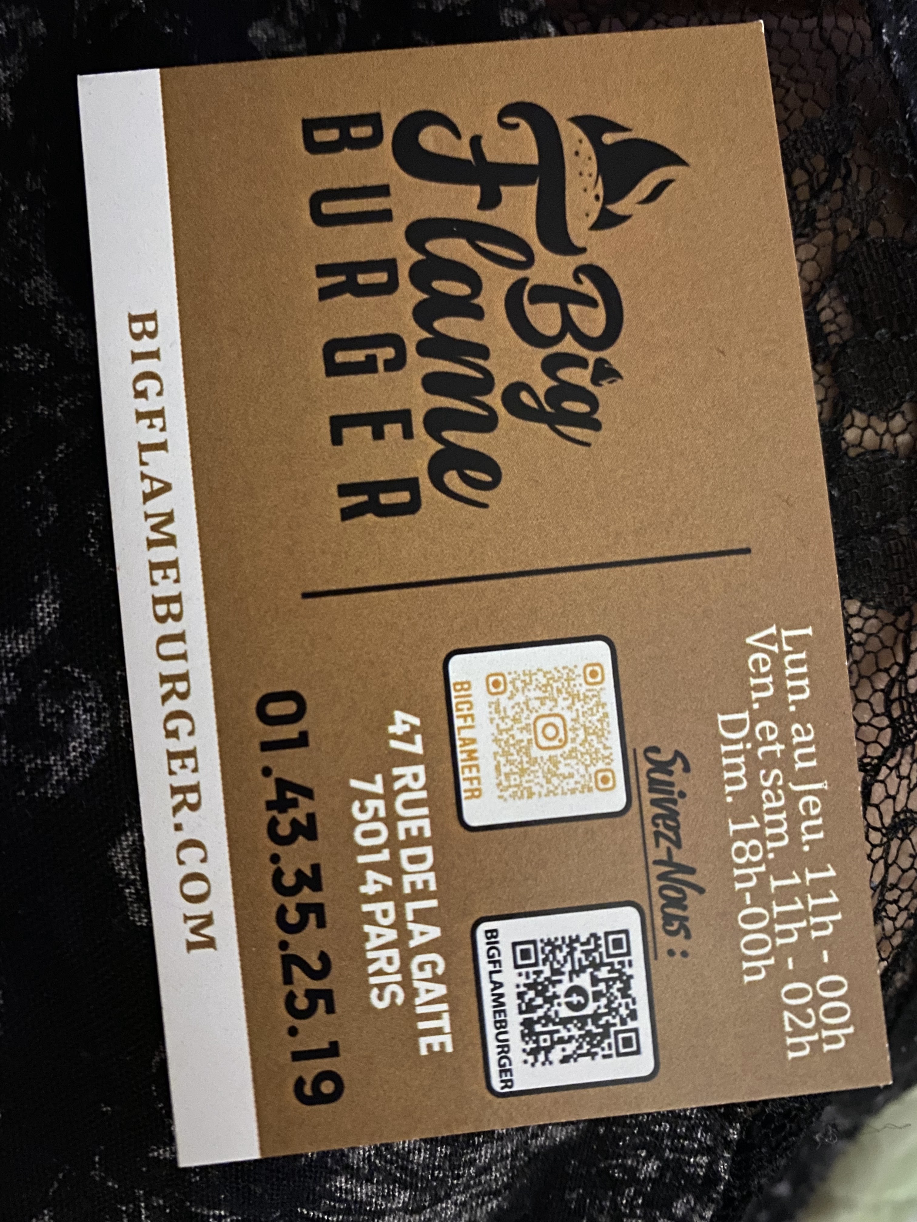 Bonjour Trap, Nous tenons à vous remercier pour votre avis. C’est très gratifiant pour notre équipe . En espérant vous revoir au plus vite à bientôt . Big Flame Burger