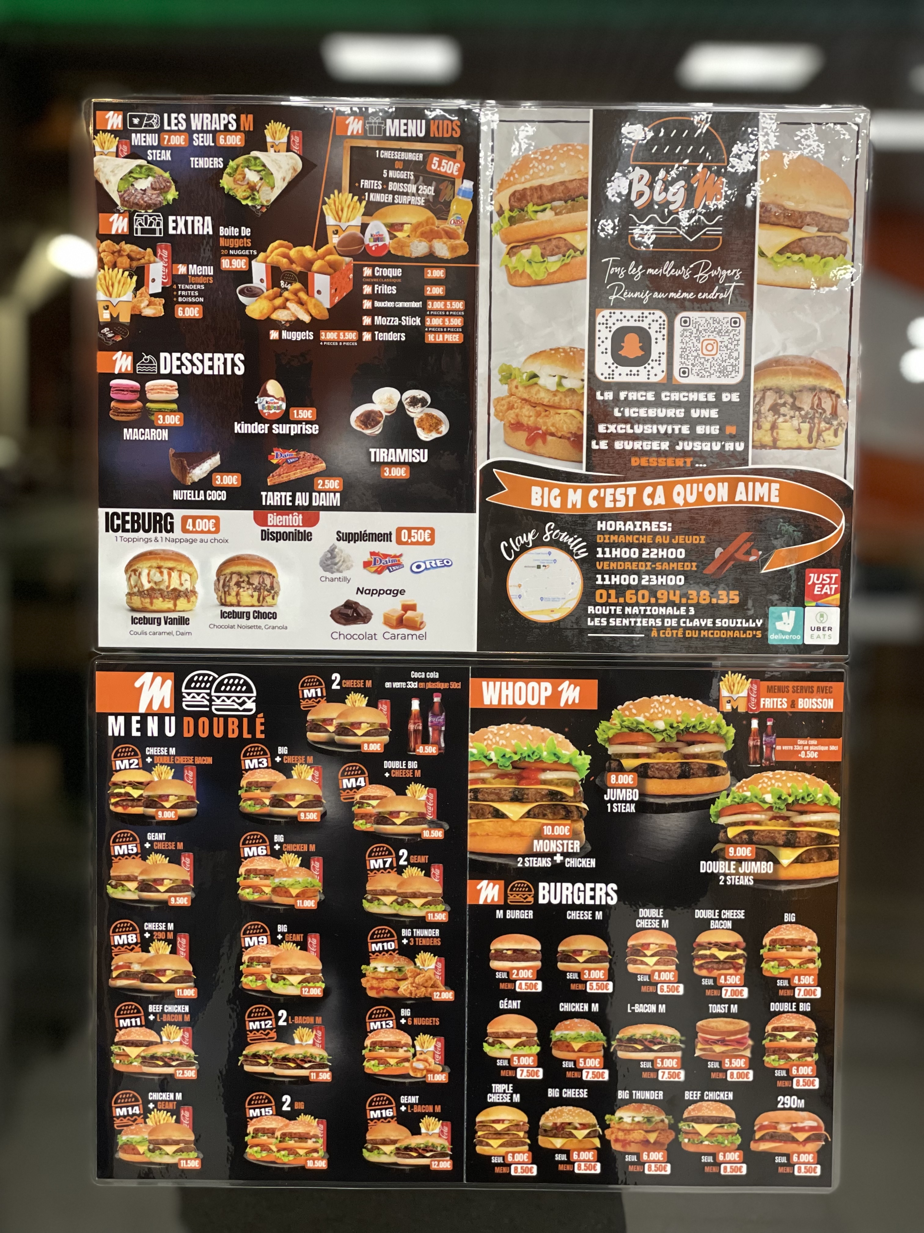 Bonjour, hier nous avons déjeuné Chez BIG M , mes enfants et moi-même étions très satisfaits, les produits étaient bons et chauds, commande et service rapide. La personne qui a pris notre commande était très patient et professionnel. Je conseille ce restaurant, parfait en famille comme en amis. Ils prennent les ANCV(chèque vacances) pas beaucoup de restaurants les prennent donc génial...