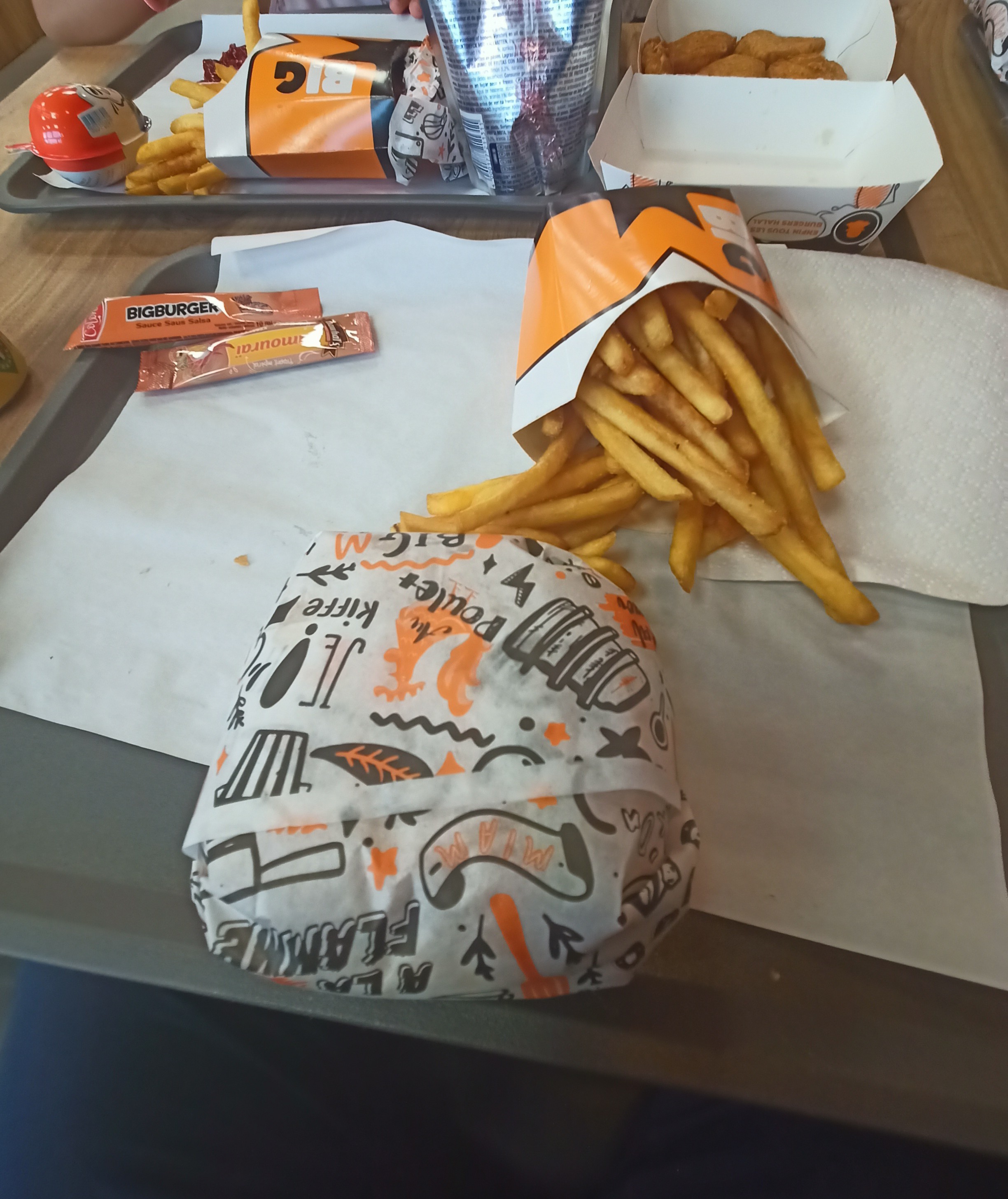Une longue attente sur place pour attendre nos 2 menus (pas de beaucoup de monde sur place lors de la commande), burger plutot classique, moyennement sec et rien de fou dedans. Je trouve le prix un peu exorbitant pour ce que sait. Je recommande pas du tout et dernière expérience pour moi dans ce fast food.