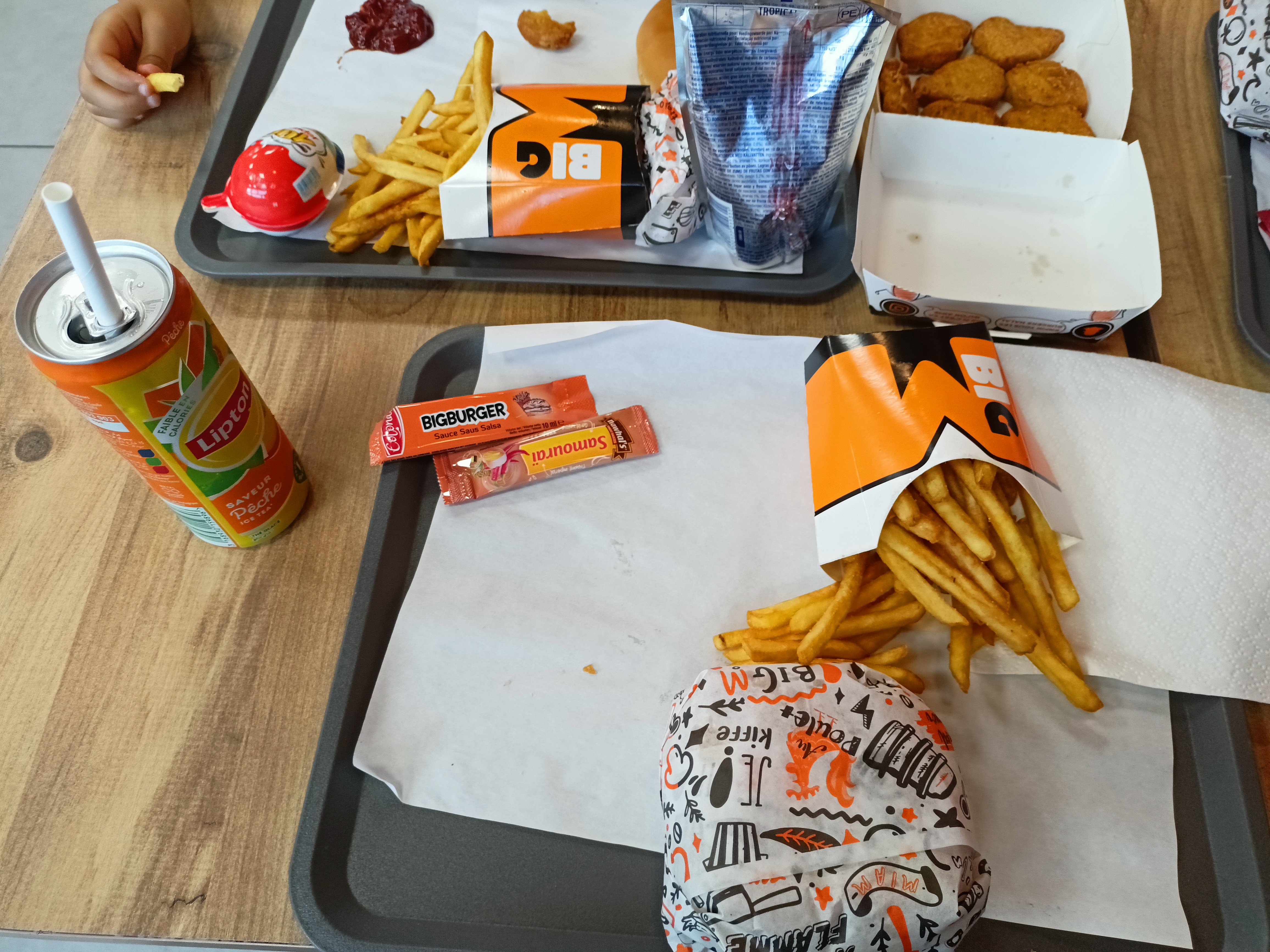On a pris Double Big M sans salade, ca cale bien,le Chicken M suffisant pour moi,et pour les enfants;ils ont bien apprécié les nuggets.Bonne suggestion du Lipton Pastèque Menthe-->👌 Big M bien placé dans le centre commercial,pour changer du MC do.