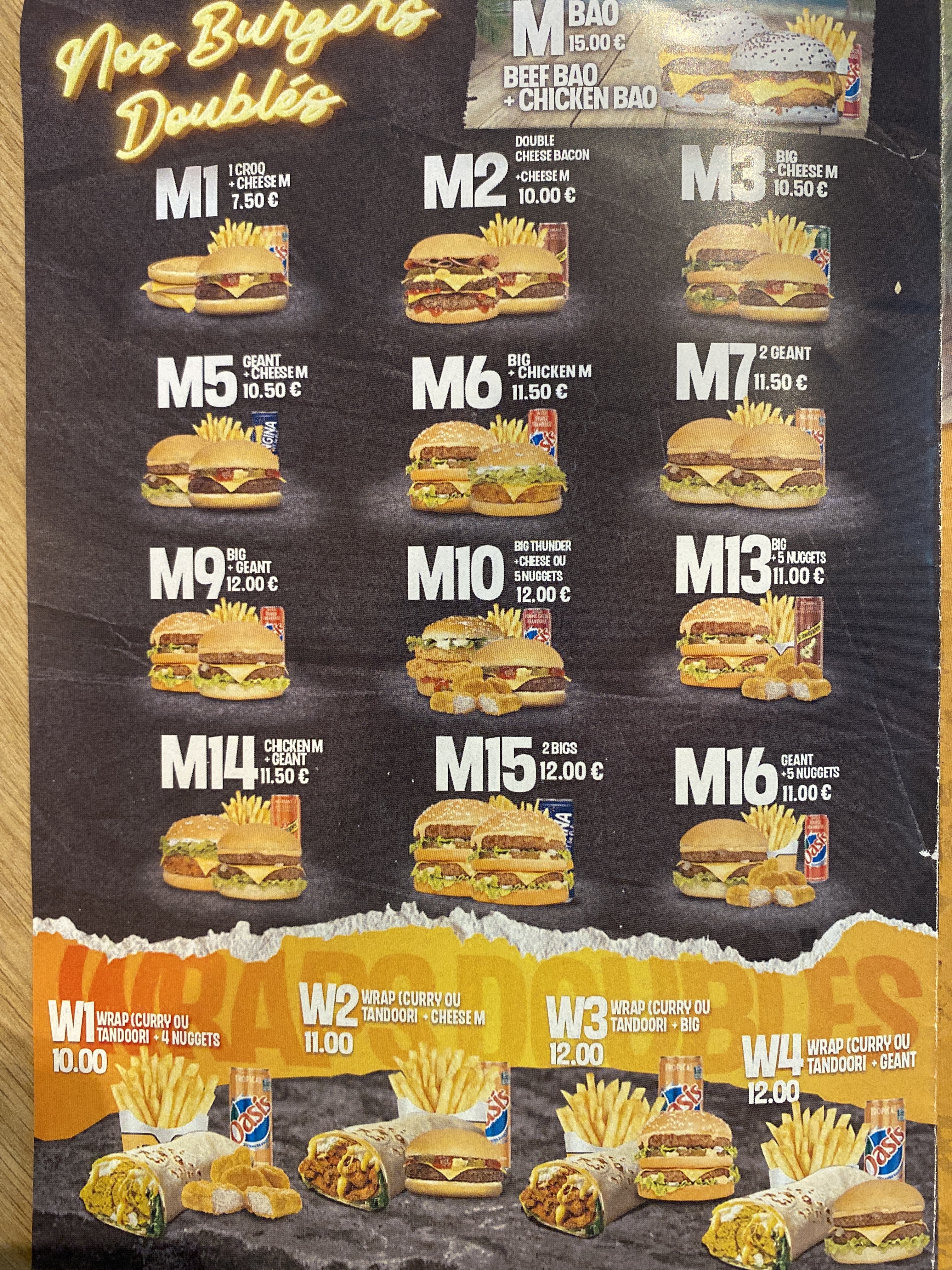 Des burgers, aux nuggets, aux wraps et même aux frites tout est super bon, pas cher et de qualité super sympa je recommande les yeux fermés !!!