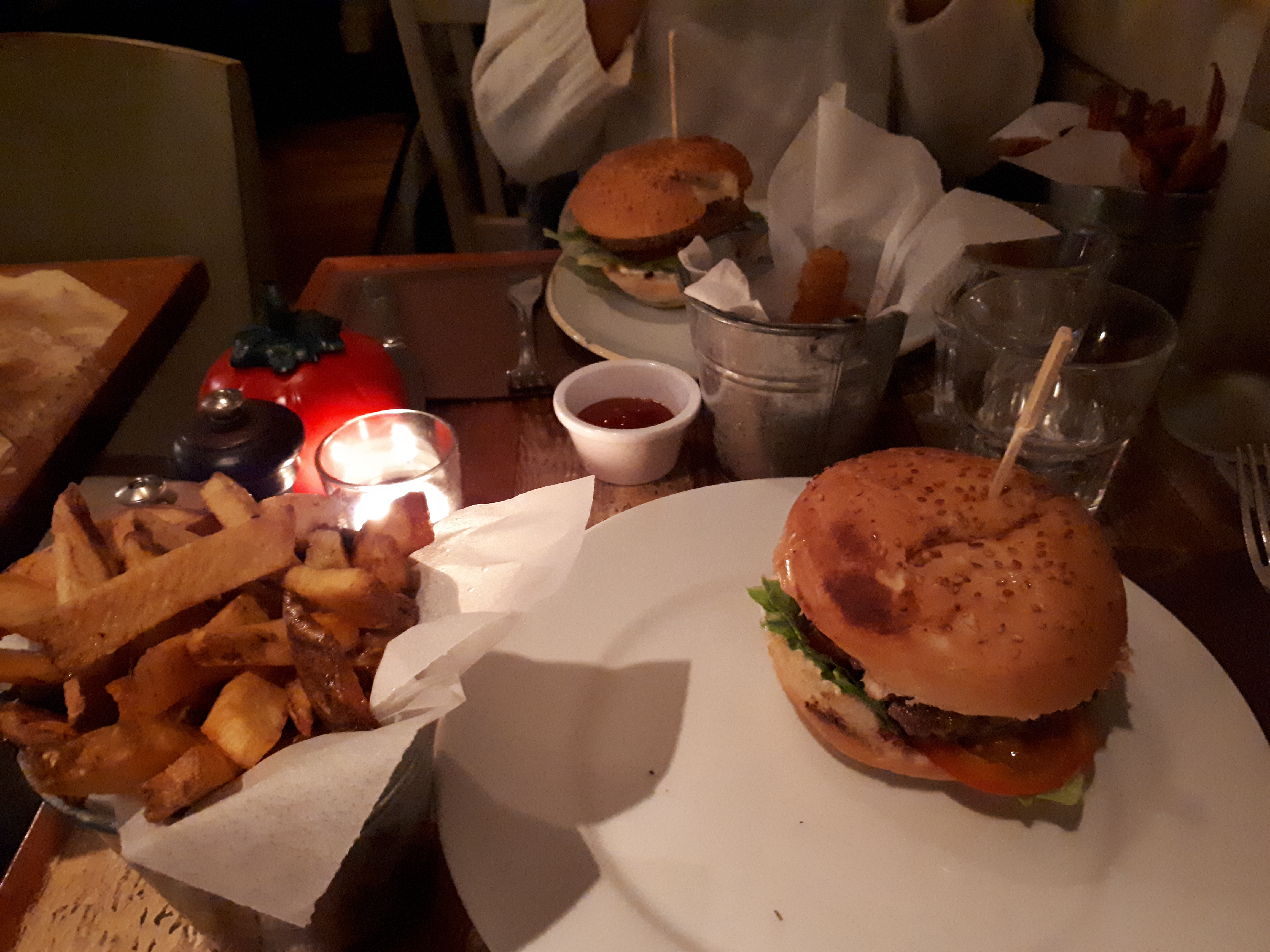 L'accueil était bien, le service également. Les burgers étaient pas mal, par contre les frites j'ai eu le droit dans ma portion à des restes (vous savez des petits bouts frits et au-dessus quelques belles frites)... Quant au prix c'est un peu élevé, les frites devraient être comprises dans le prix du burger.