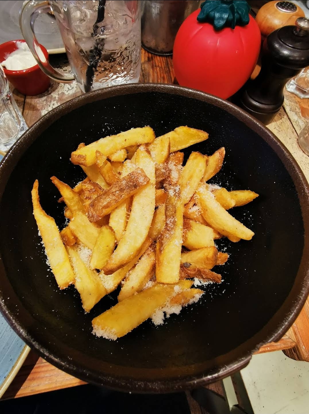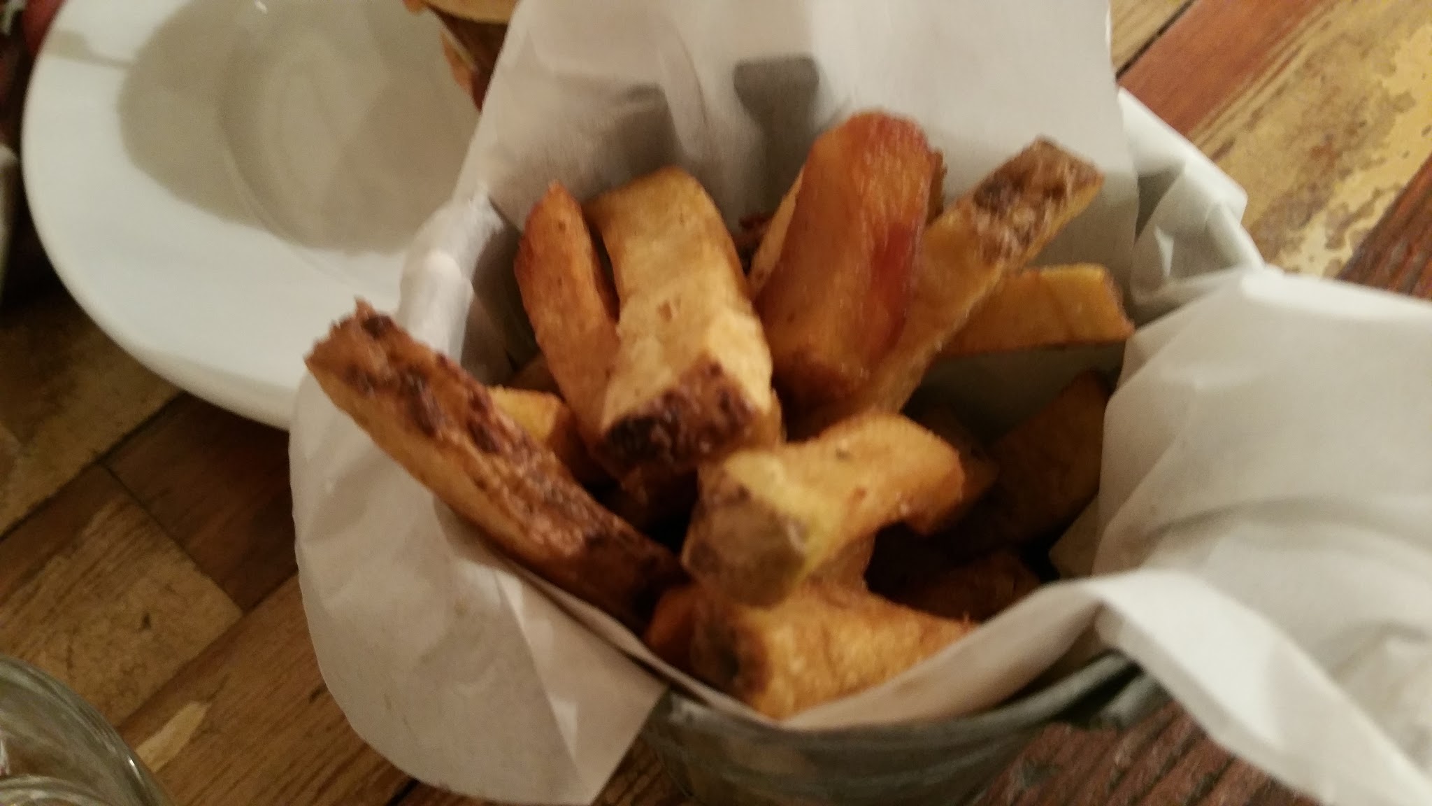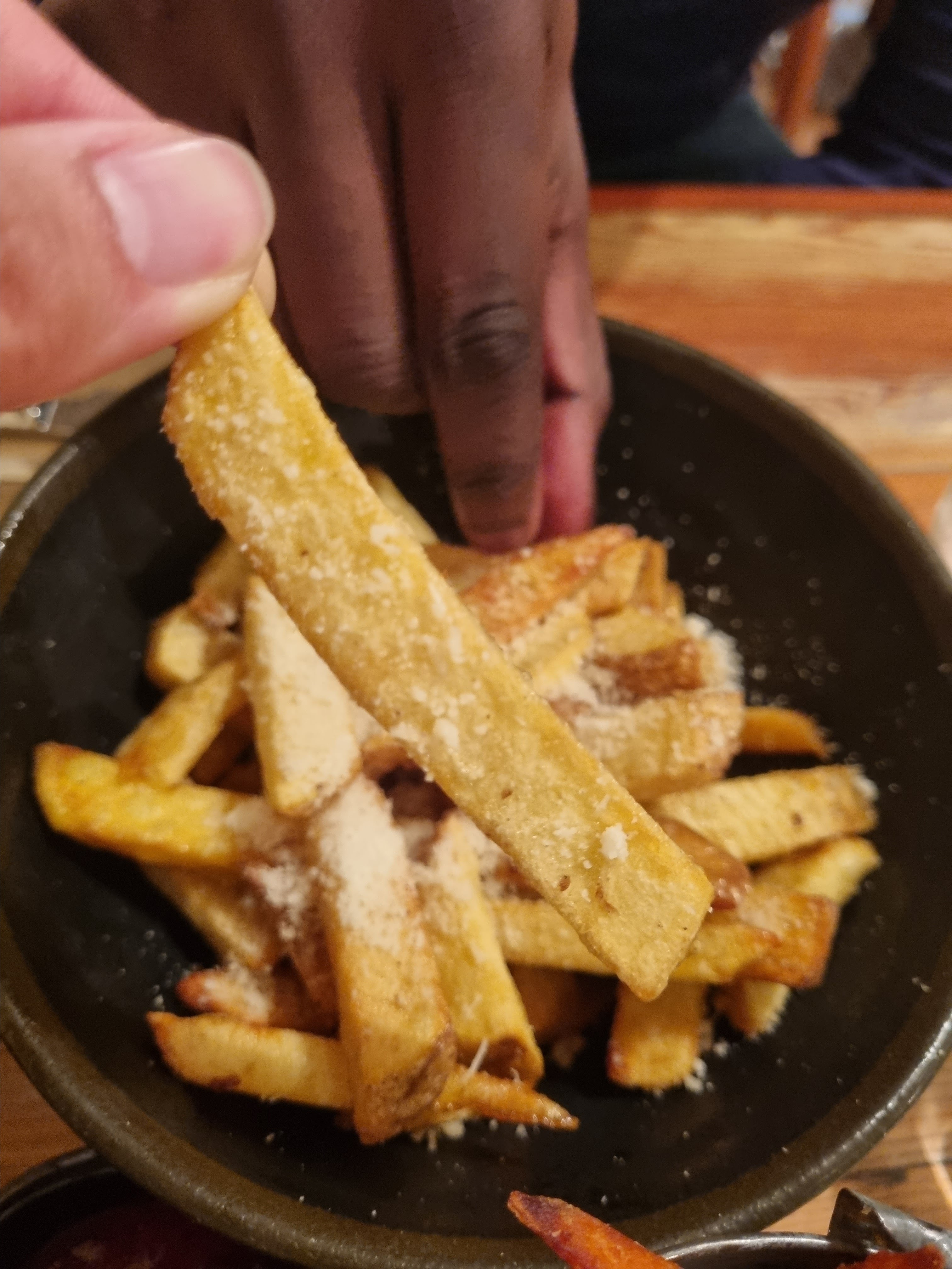 Restaurant en plein cœur de Paris à la décoration simple et chaleureuse. Nous avons pris les frites de patate douce ainsi que les frites au parmesan et poivre de truffe. Elle étaient bonnes mais peut être un peu chères pour la quantité. Cela dit j'ai beaucoup aimé les frites de patate douce. Le qr code permettant de payer directement est assez pratique.