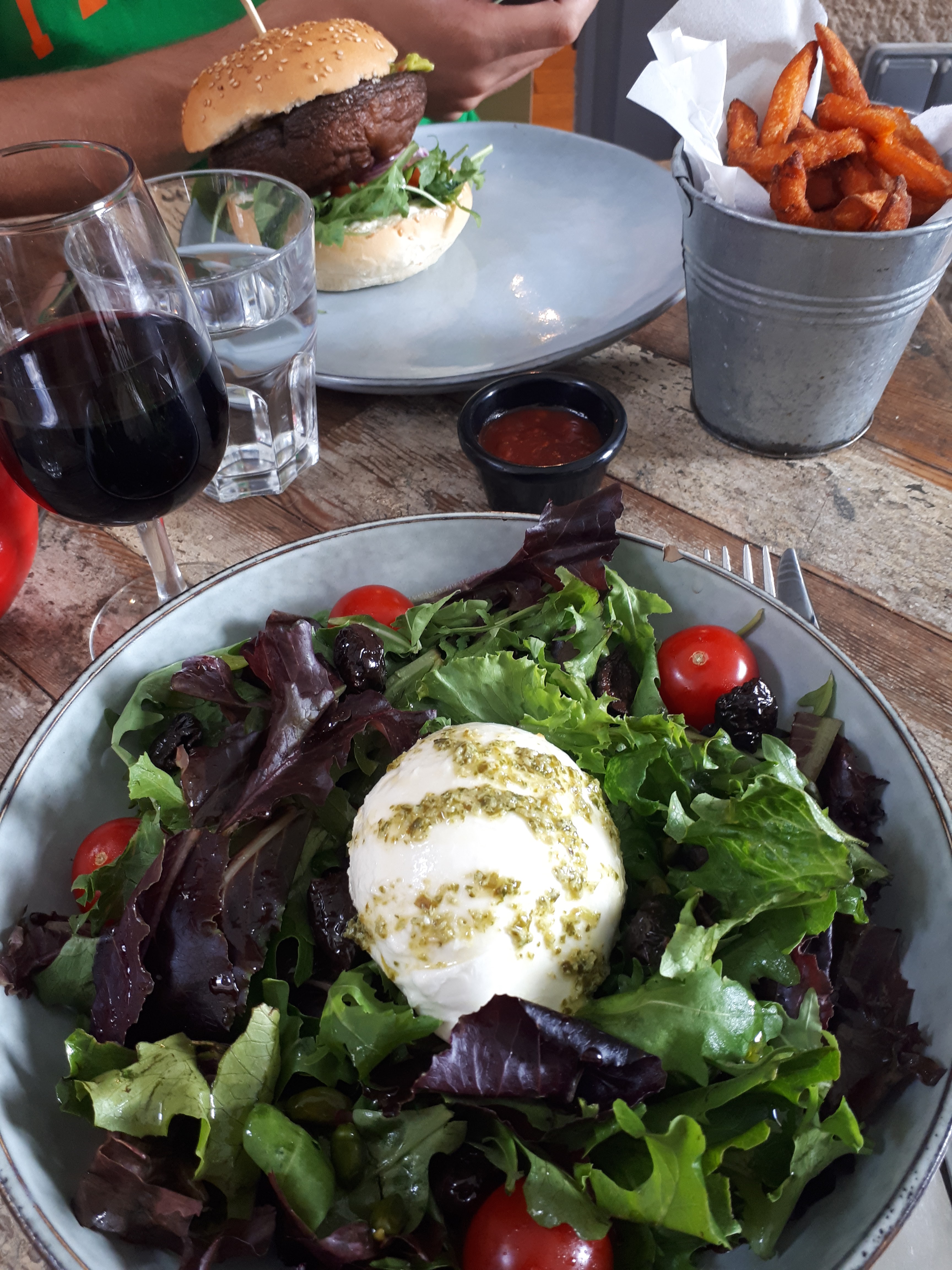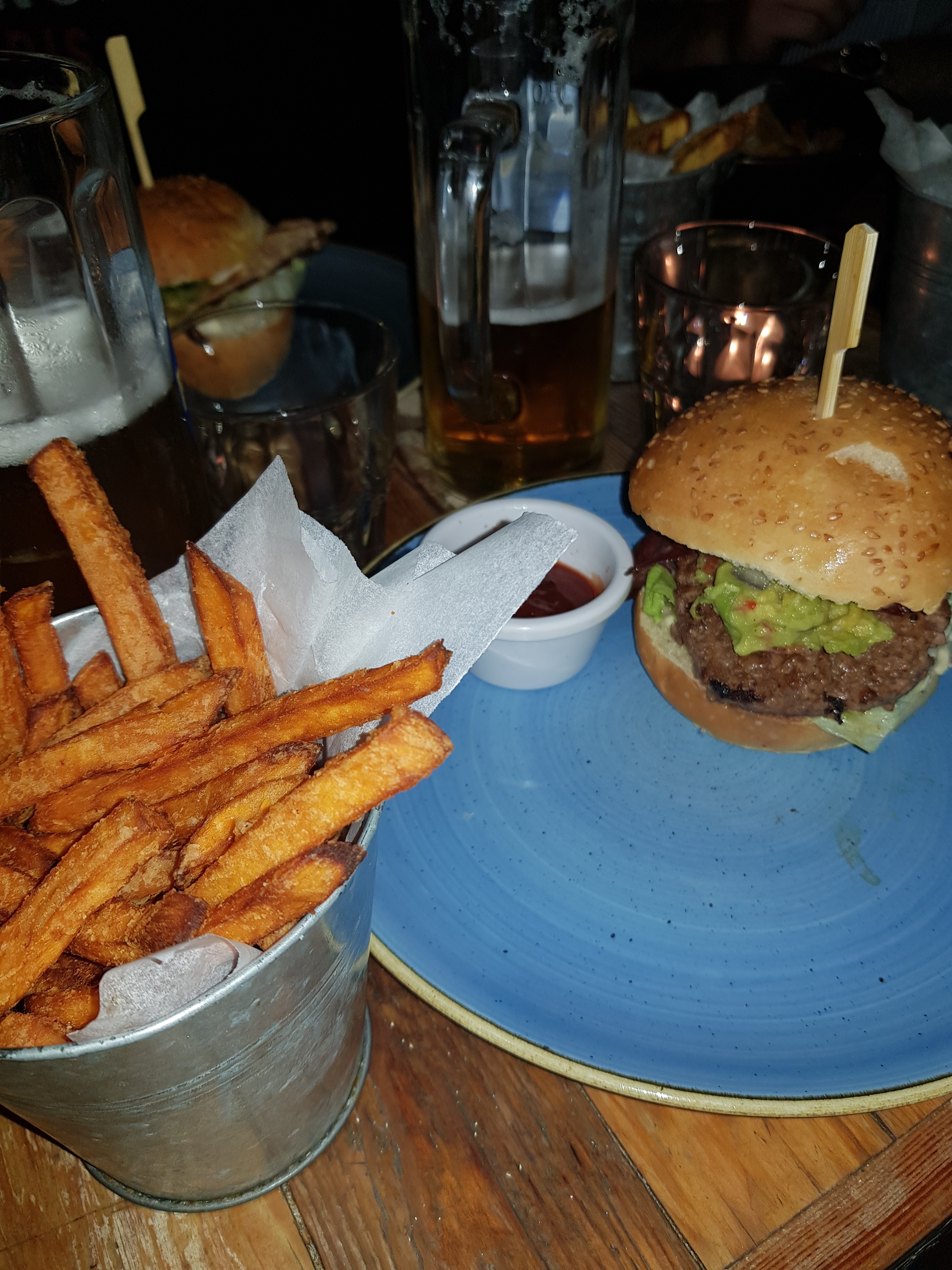 Lieu chaleureux, bon service mais burger moyen -du moins le portobello végétarien avec son guacamole maison à 10,90€- car le pain était très sec et le gros champignon manquait d'assaisonnement. Sinon les frites maison sont délicieuses!