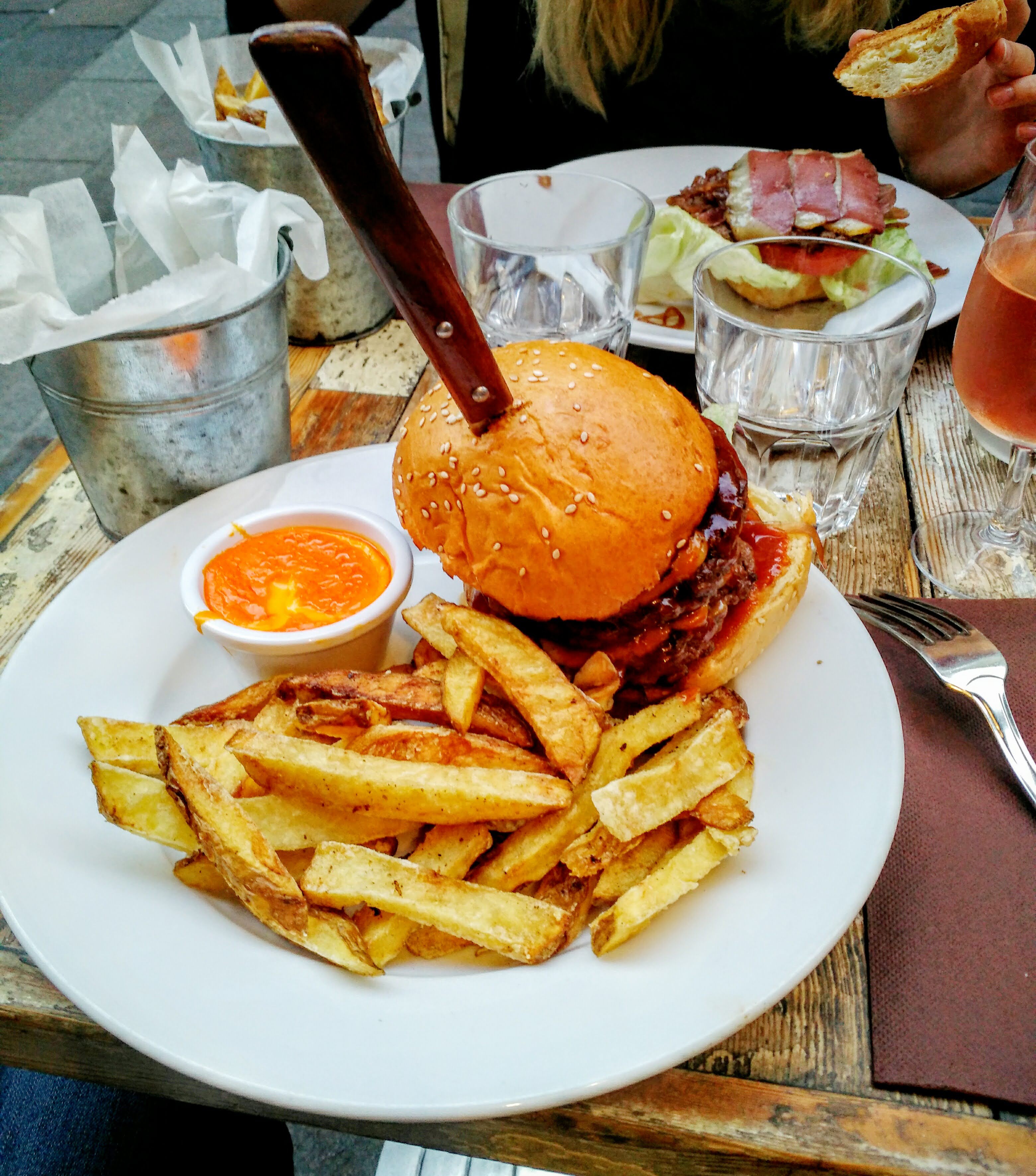 Restau genre burger pseudo gastronomique pas de miracle mais qualité correcte, frites un peu cher mais ils ont des frites à la patate douce, ce qui est rare. Terrasse sympa. Du monde mais il y a une salle intérieure où il est plus facile d'avoir de la place.